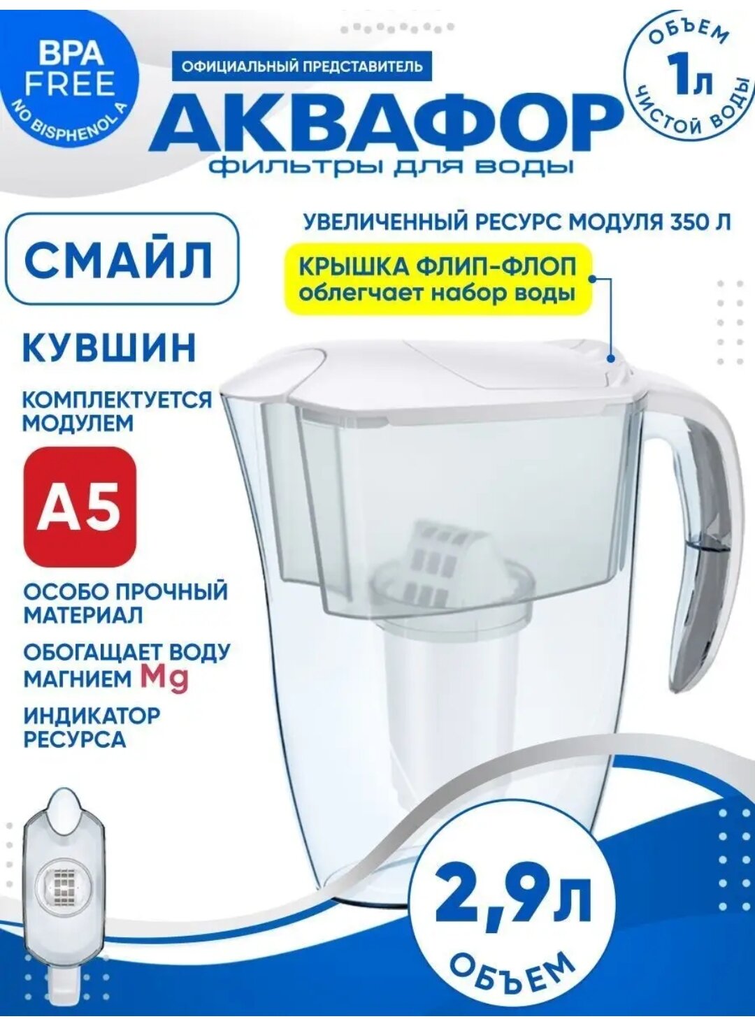 Фильтр-кувшин Аквафор Смайл А5 2.9л белый