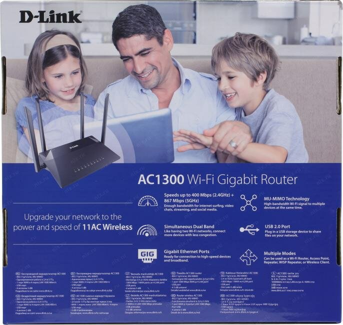 2. Не греется. 3. Покрытие на квартиру 42 кв.метра хорошее. 4. Честно раздает всю скорость от провайдера. 5. Хорошее железо(в плане производительности) 6. порт usb 3.0 (можно использовать для подключения 3G-модема, жесткого диска или принтера) 7. Адекватная цена за двухдиапазонный wi-fi роутер класса AC1300 8. Подробная документация к роутеру на русском языке. За примерно ту же цену, подобный функционал и работу с двумя диапазонами разве что TP-Link Archer C1200 и Netis W2880 предлагают. Выбирал между этими 3 моделями и решил взять D-Link. (Также приглянулся ASUS RT-AC58U, но он на 1500 дороже) В пользу D-Link склонил опыт использования в прошлом d-link 615. Функционал для неискушенного пользователя вполне достаточный. Меню логичное, все отображается на русском языке. Настроил Wi-Fi сети и dlna, подключил жесткий диск с фильмами, все прекрасно работало(до того как начали отваливаться сети). Телевизор даже шустрее открывал файлы с помощью dlna-сервера, чем когда жесткий диск был подключен к телику напрямую. |
