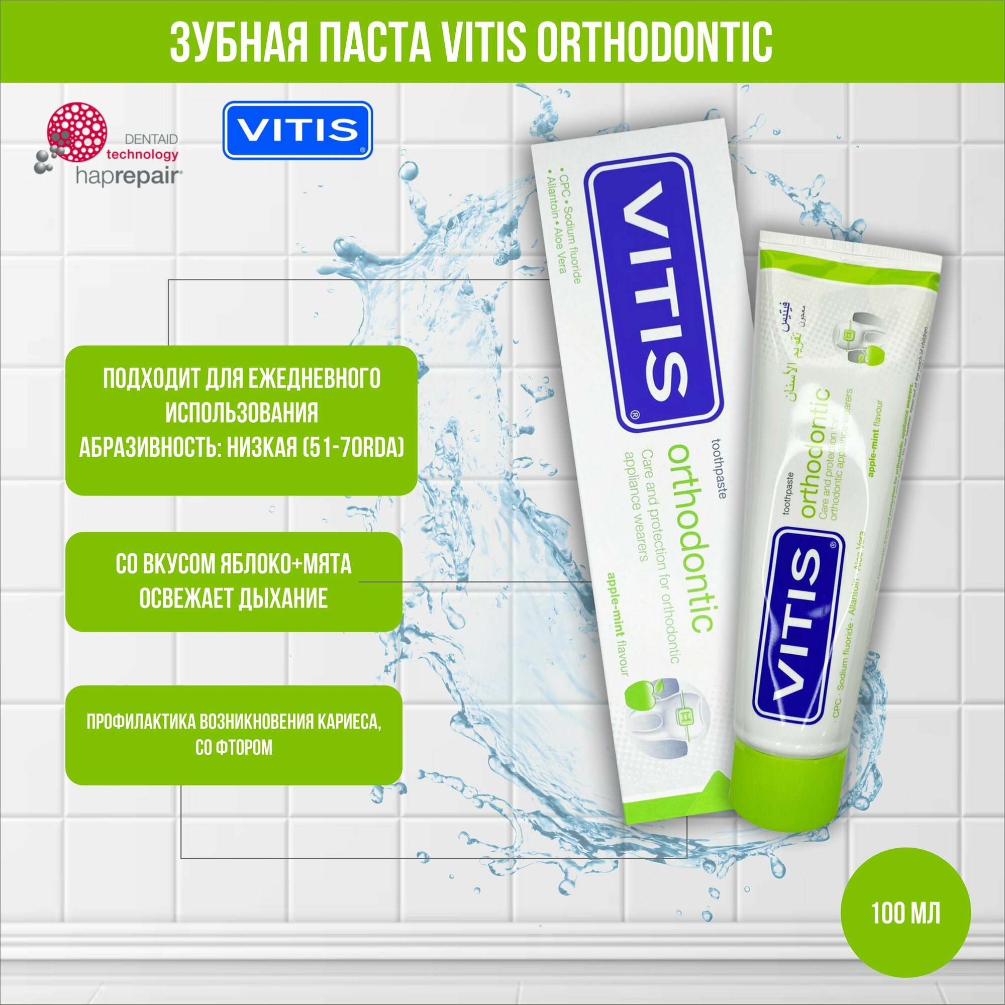Зубная паста Dentaid Vitis Orthodontic, яблоко и мята, 100 мл