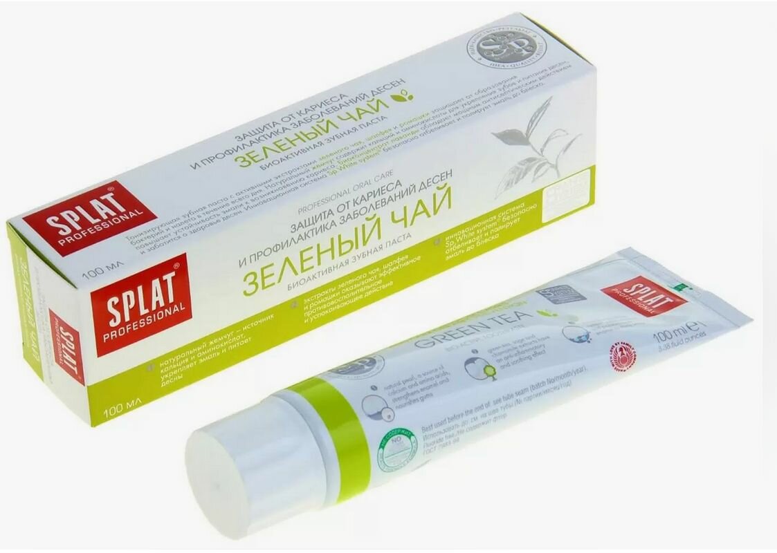 SPLAT Зубная паста SPLAT Professional GREEN TEA, защита от кариеса и профилактика заболеваний десен 100 мл