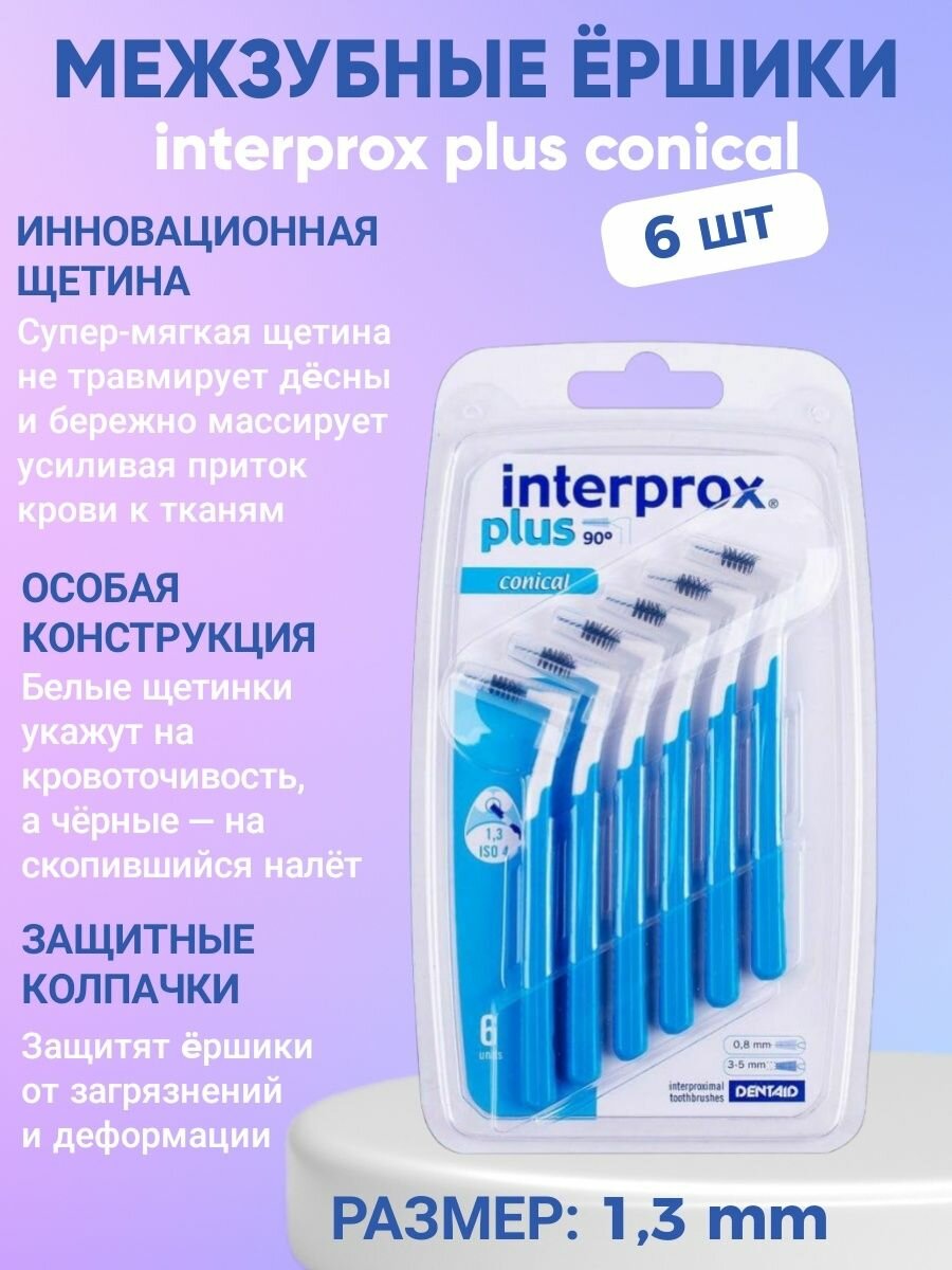 Зубной ершик InterProx Plus conical 1.3, голубой, 6 шт.