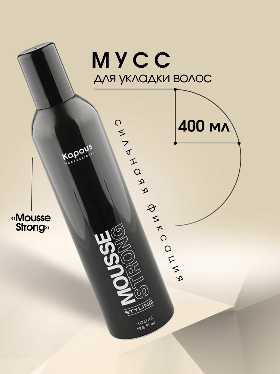 Мусс для укладки волос KAPOUS PROFESSIONAL Mousse Strong, сильной фиксации, 400 мл
