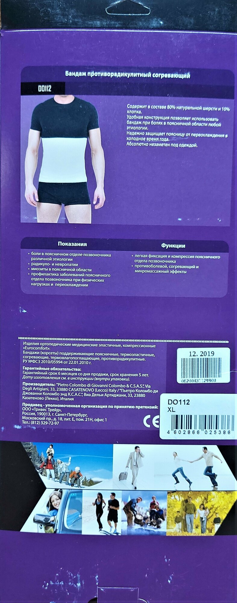 Бандаж противорадикулитный согревающий Eurocomfort DO112, размер L