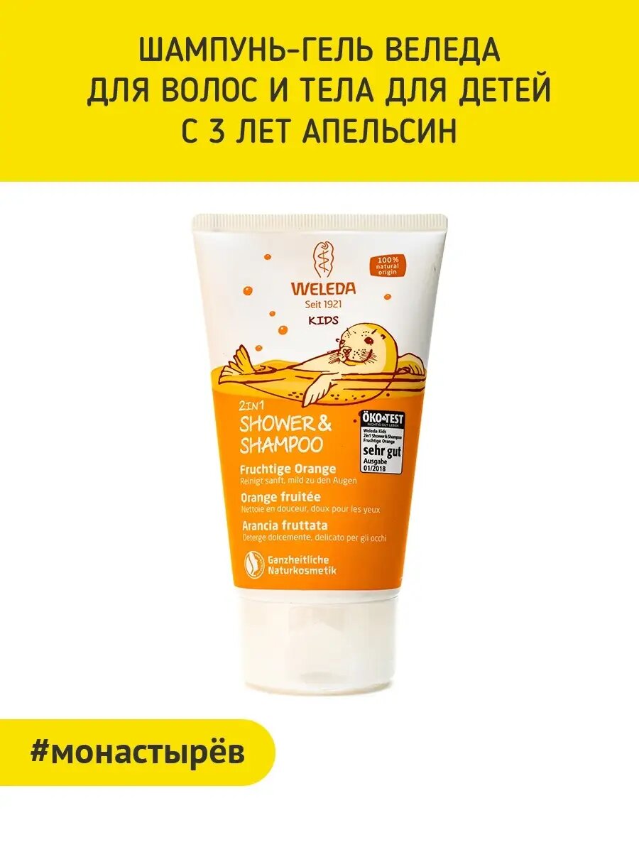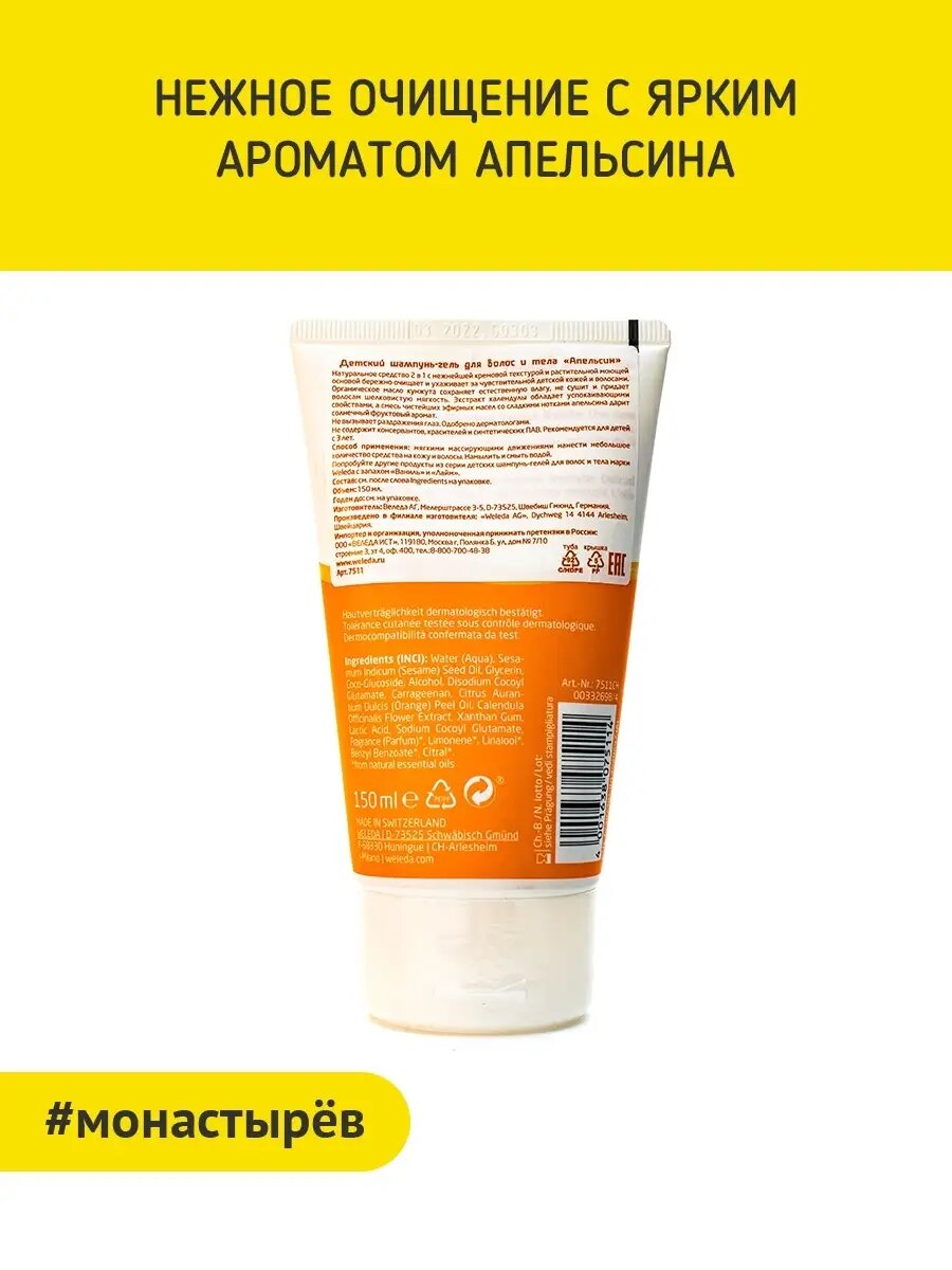 Купить WELEDA Детская серия для волос и тела 2 в 1 Детский шампунь-гель для волос и тела Апельсин 150 мл