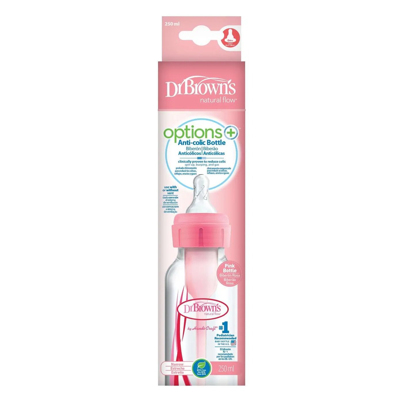 Купить Бутылочка антиколиковая DR. Brown's с узким горлышком Розовая 250 мл 0+ мес
