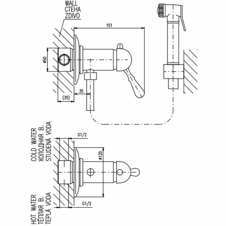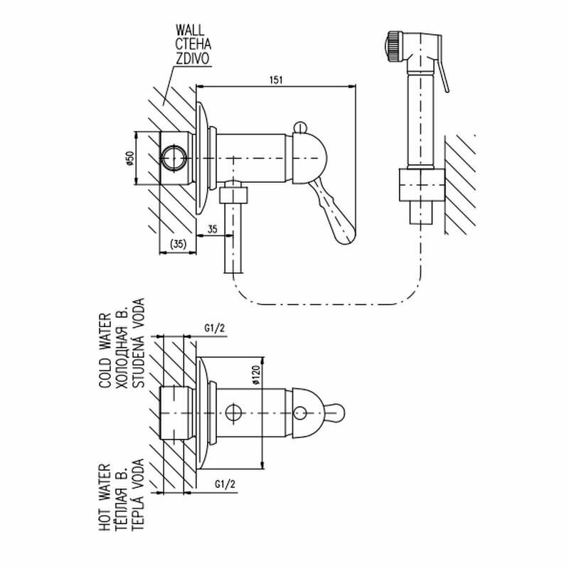 Смеситель RAV Slezаk Labe для биде, включая тело скрытого монтажа, держатель пласт, душевой лейкой с нажимным механизмом пласт.