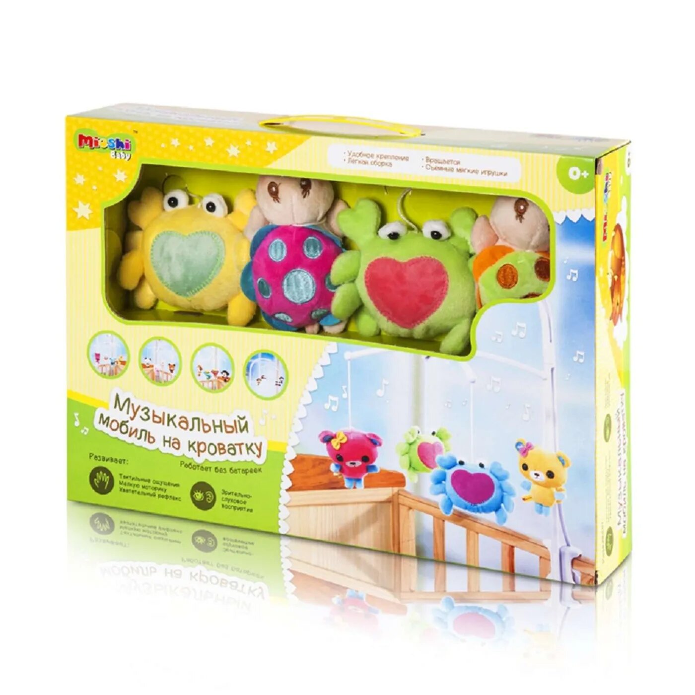 Мобиль на кроватку Mioshi Baby "Забавные зверюшки" (музык., заводн., мягк. игрушки, зеленый)