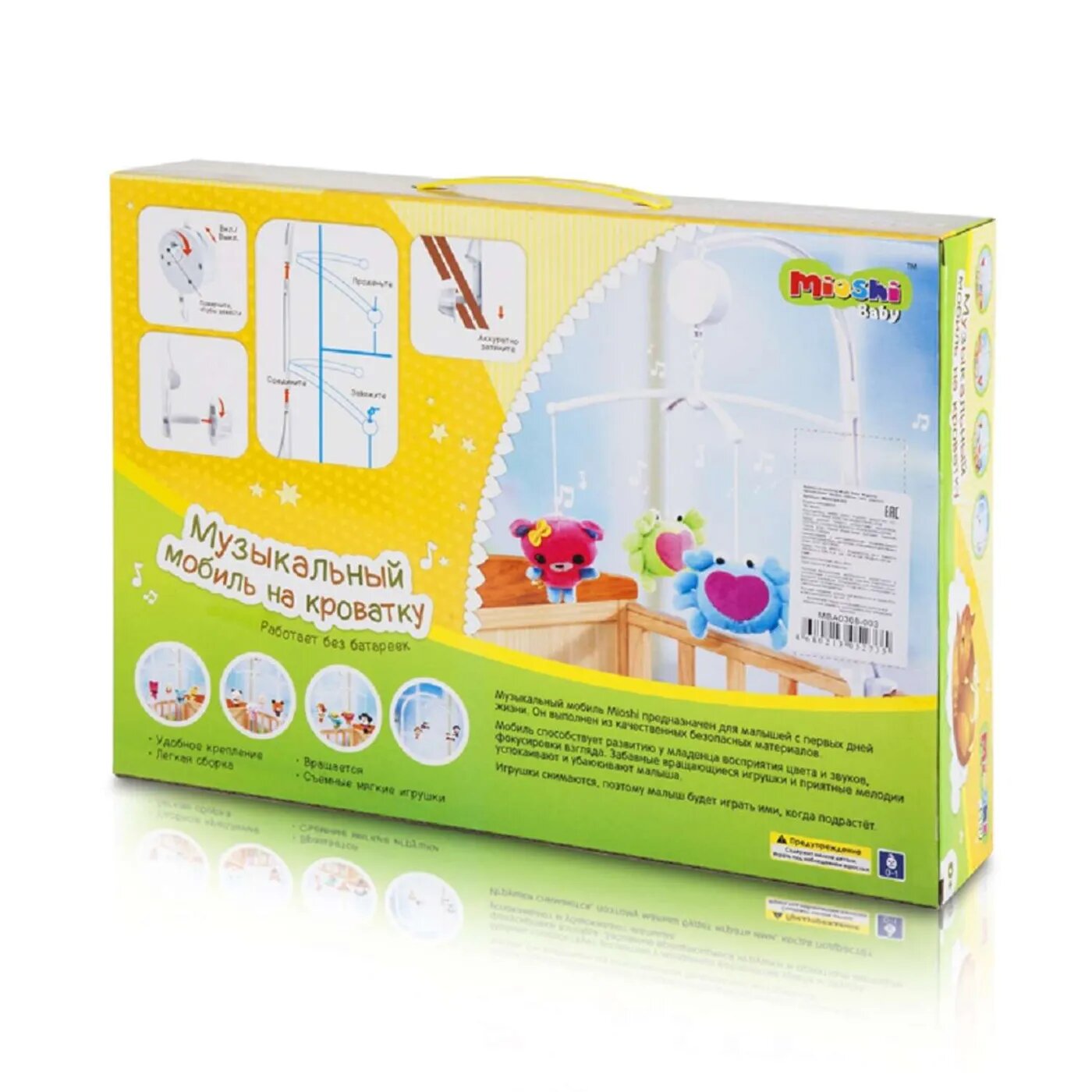 Купить Мобиль на кроватку Mioshi Baby Забавные зверюшки /Музыкальная/ Заводная/ MBA0308-003//зеленый