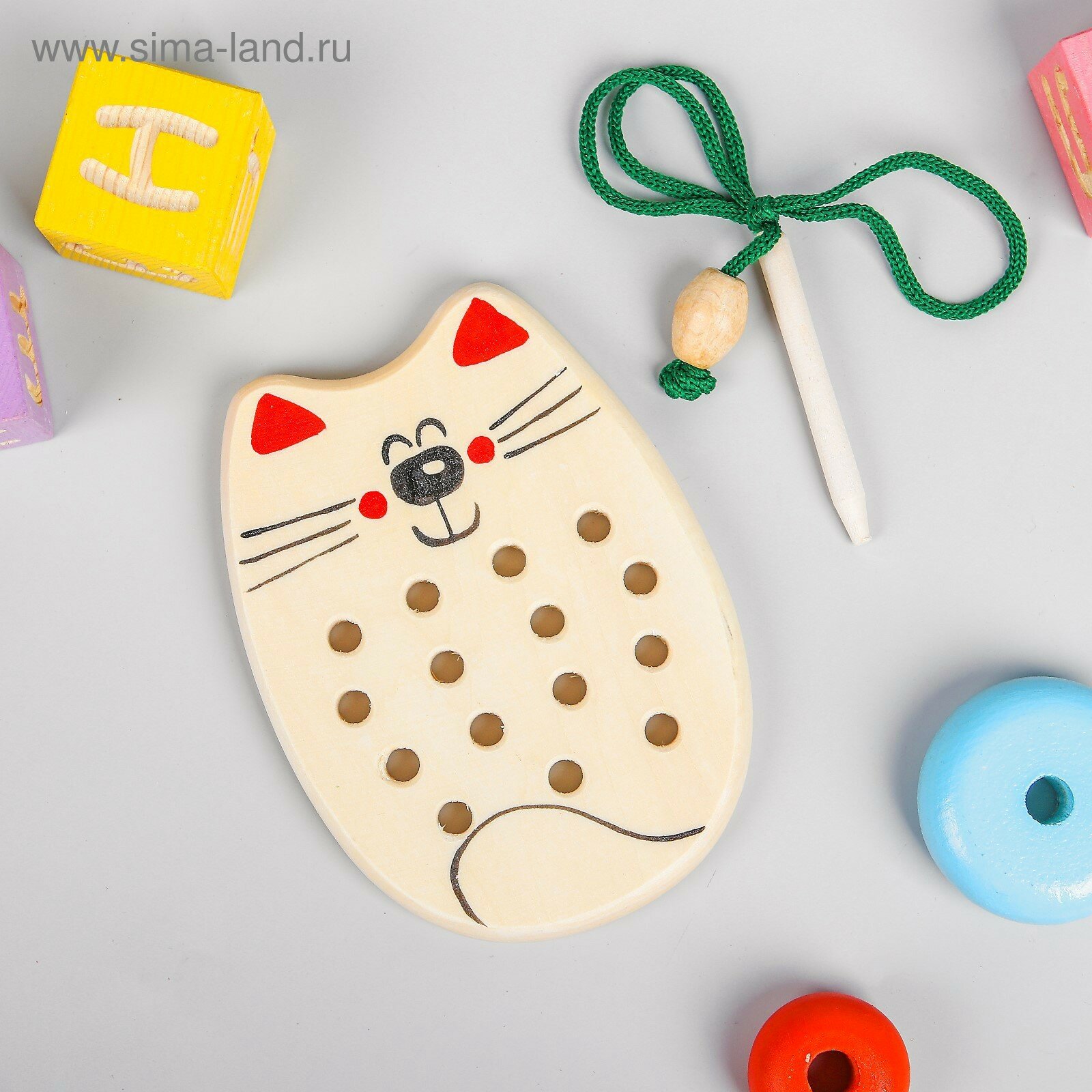 Купить Развивающая деревянная игра-шнуровка "Кот", развитие мелкой моторики