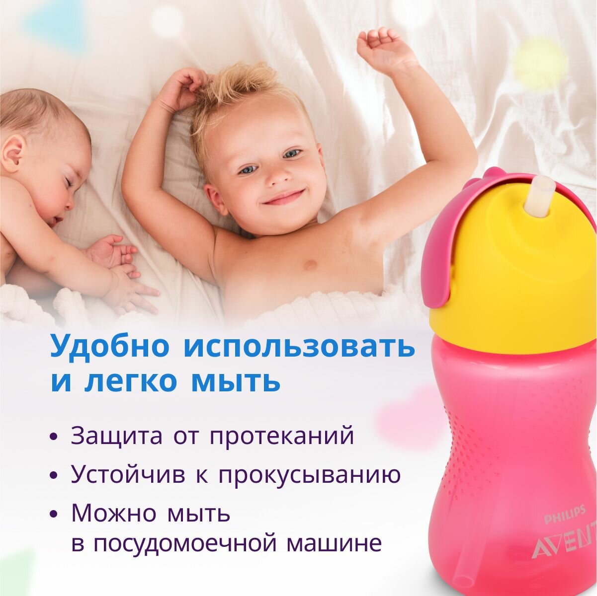 Чашка с трубочкой Philips Avent 300мл, 12 мес+, для девочки, цвет розовый, желтый