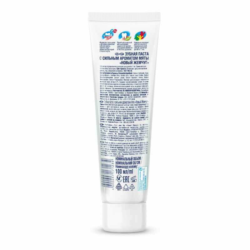 Зубная паста 100 мл, новый жемчуг, комплексная защита от кариеса, с сильным ароматом мяты, 17123