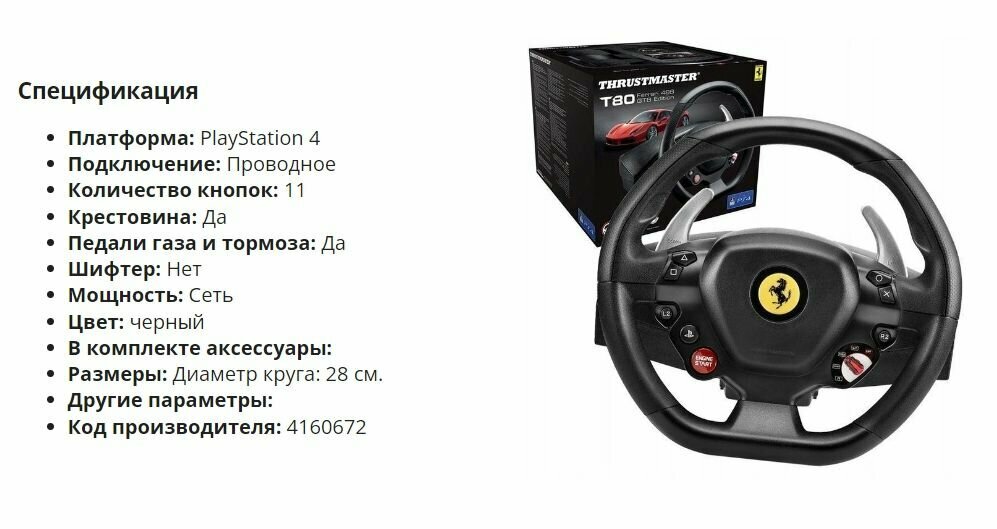 Купить Руль игровой Thrustmaster T80 Ferrari 488 GTB Edition для PS4 / PC