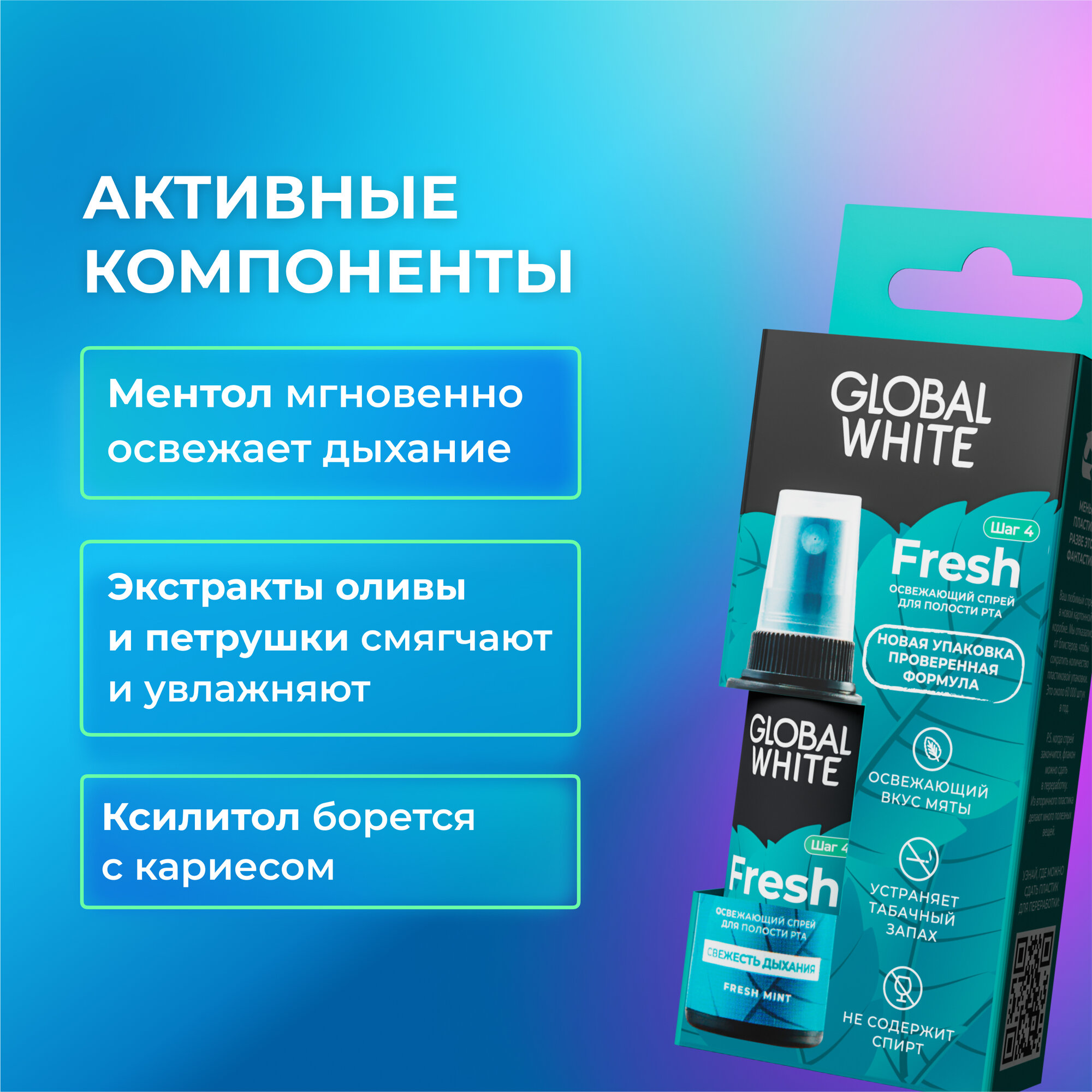 Освежающий спрей для полости рта со вкусом мяты GLOBAL WHITE Fresh GLOBAL WHITE / 15 мл