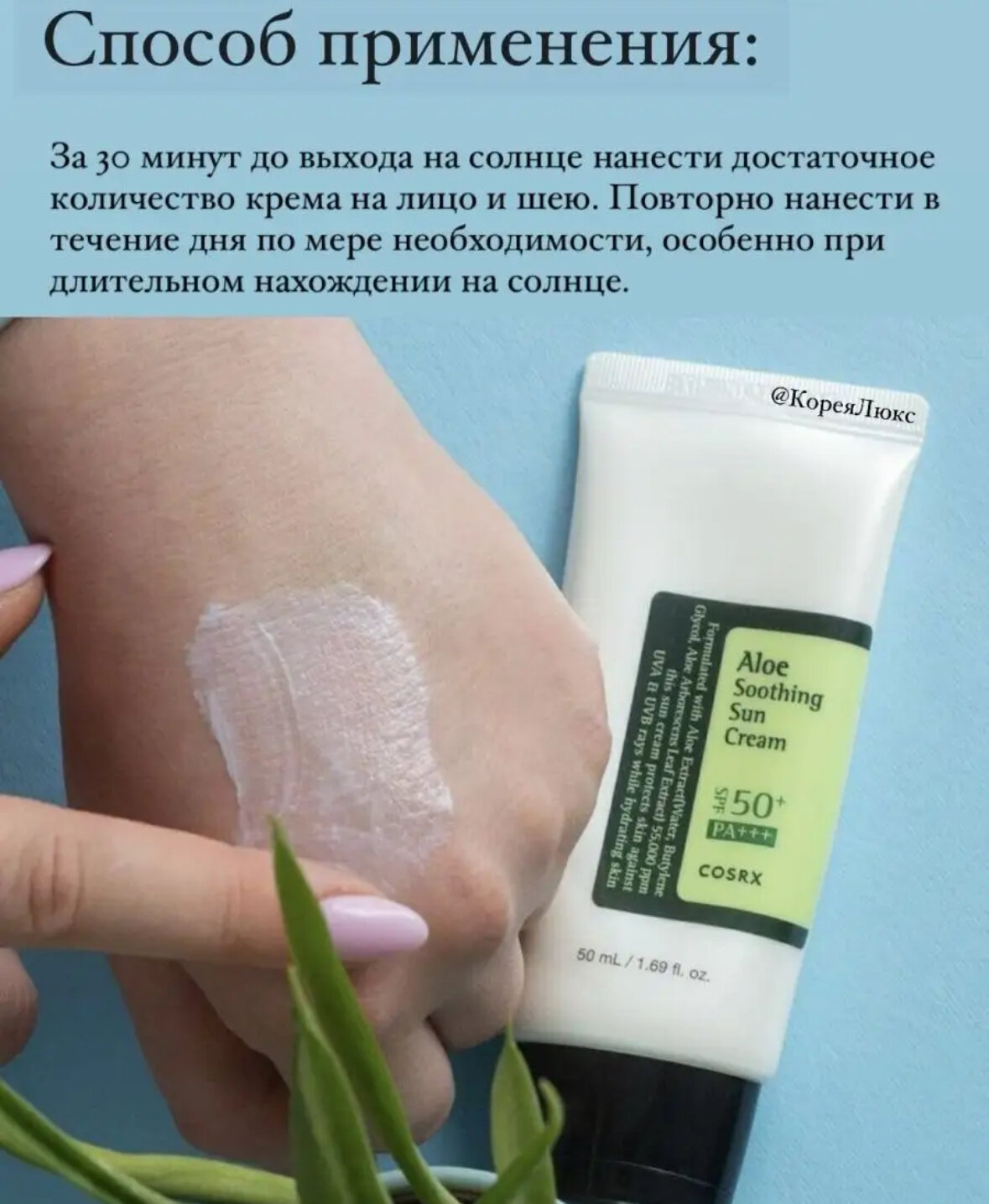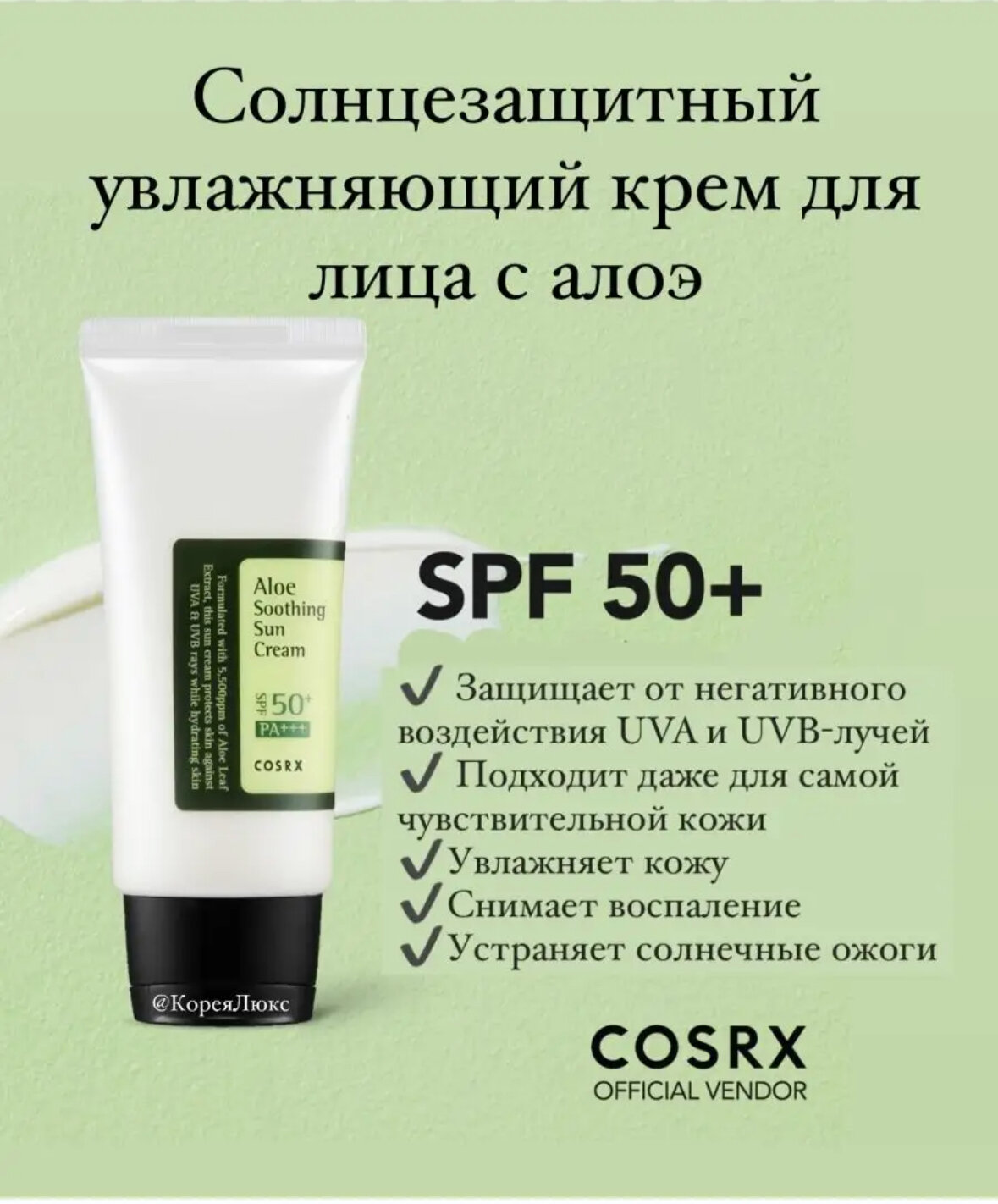 "Cosrx SPF 50" - солнцезащитный крем с алоэ интересное: