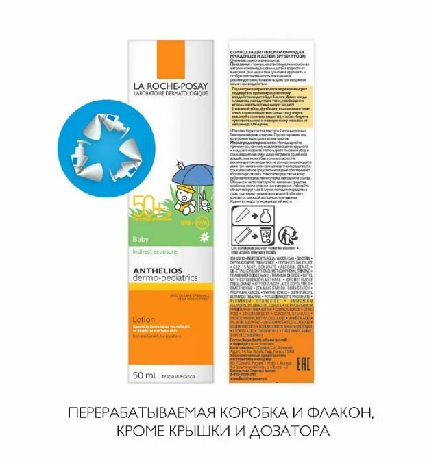 La-Roche-Posay Anthelios Солнцезащитное молочко для младенцев и детей SPF 50+, 50 мл