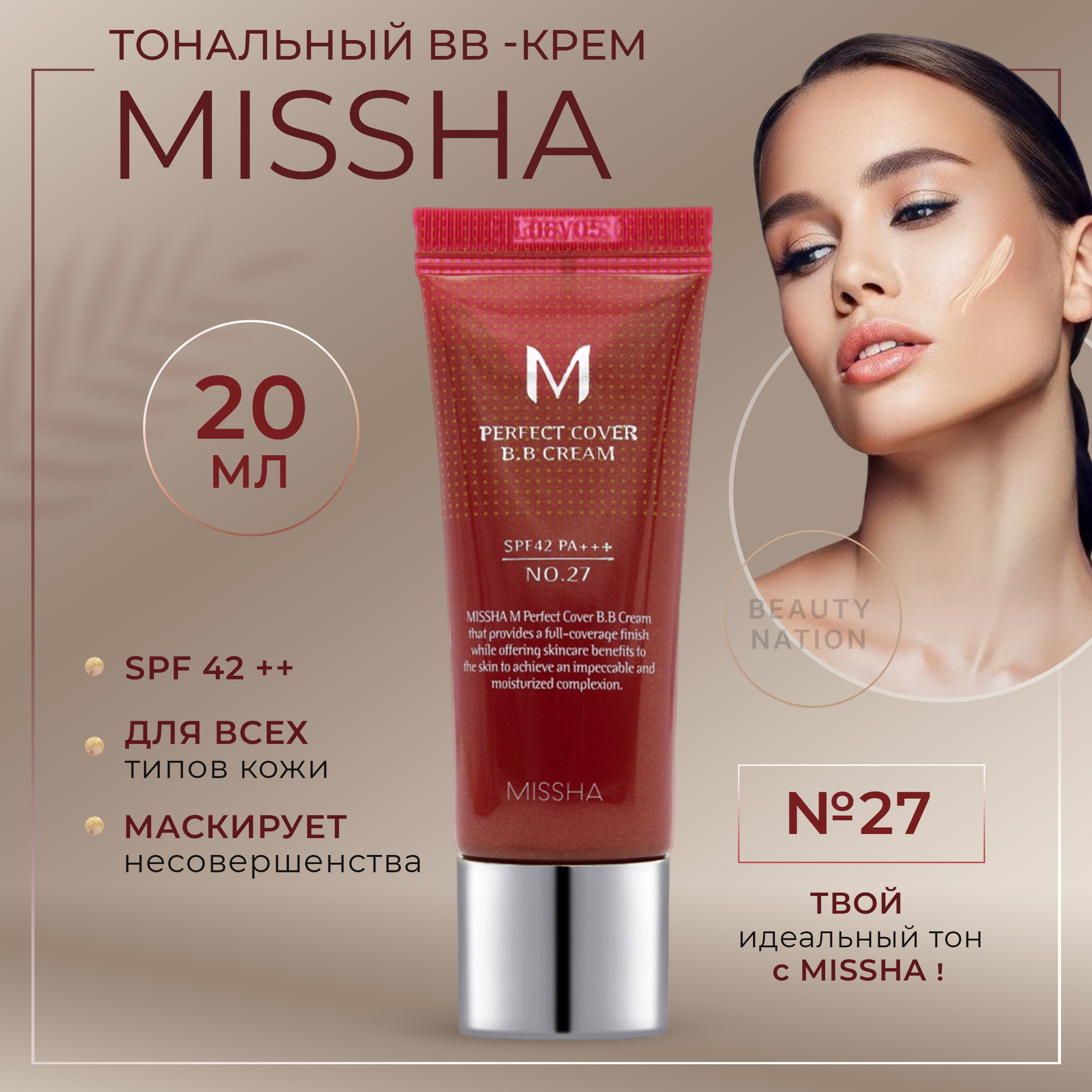 Missha тональный ВВ-крем Perfect Cover "Идеальное покрытие" SPF42/PA+++ №27