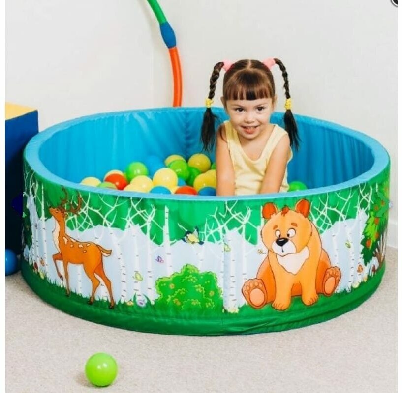 Детский мягкий сухой бассейн "Зверята" круглый, для дома и дачи, 100х100х33 см
