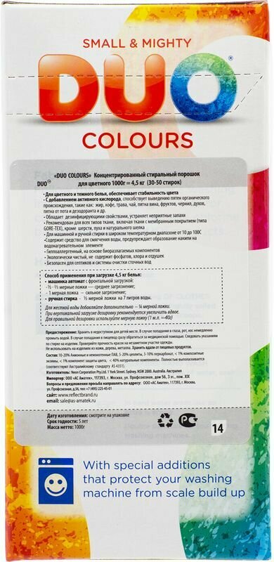Reflect Стиральный порошок Duo "Colours", для цветных и темных тканей, концентрированный, 1 кг