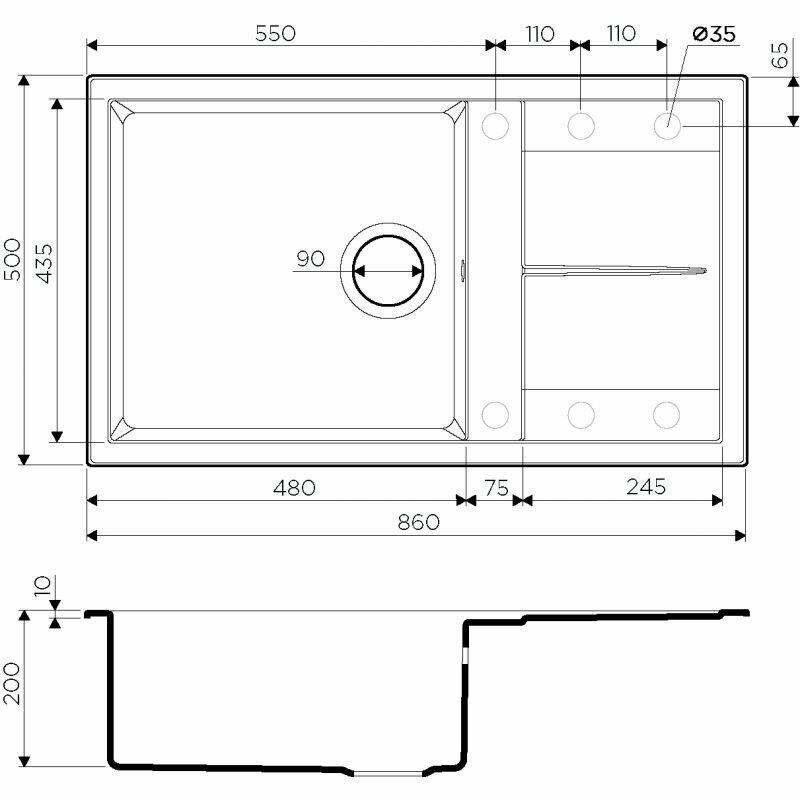 | Плюсы: | Сделано в Италии, толщина самой мойки, очень толстая стенка, отверстия снизу лучше коронкой сверлить. |