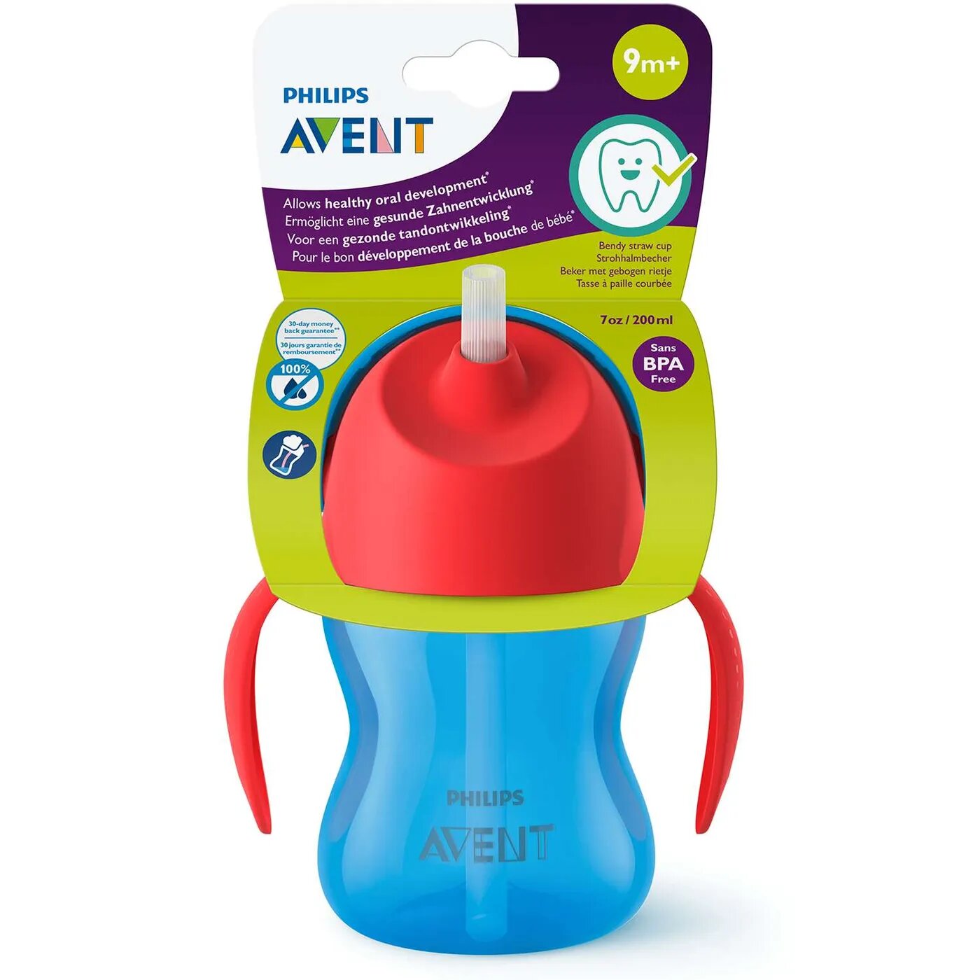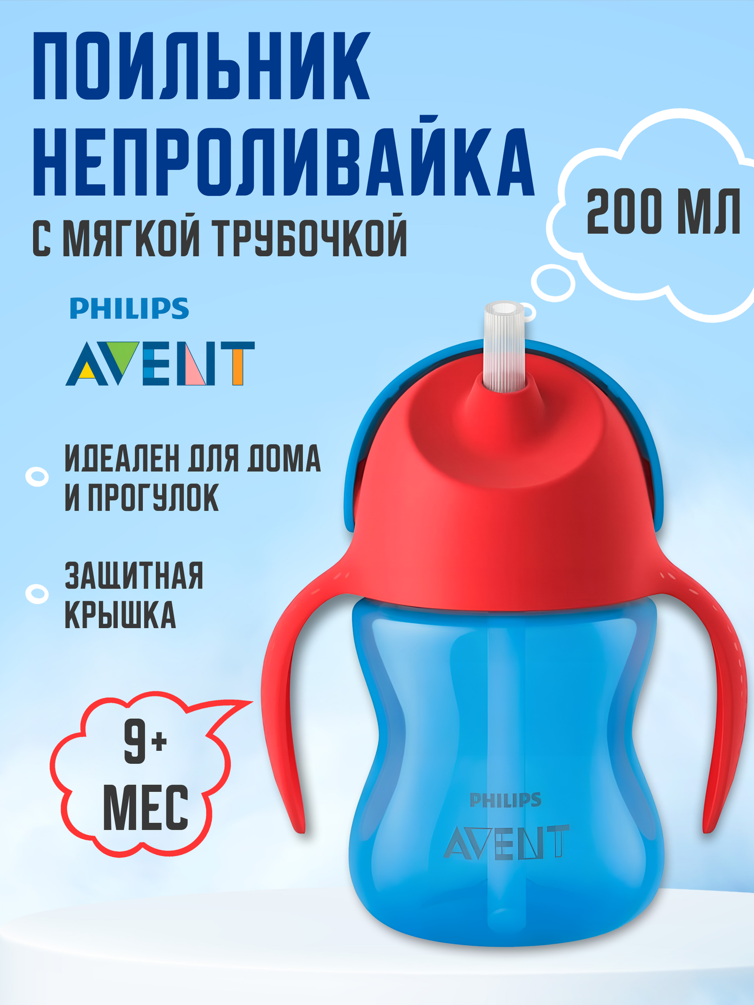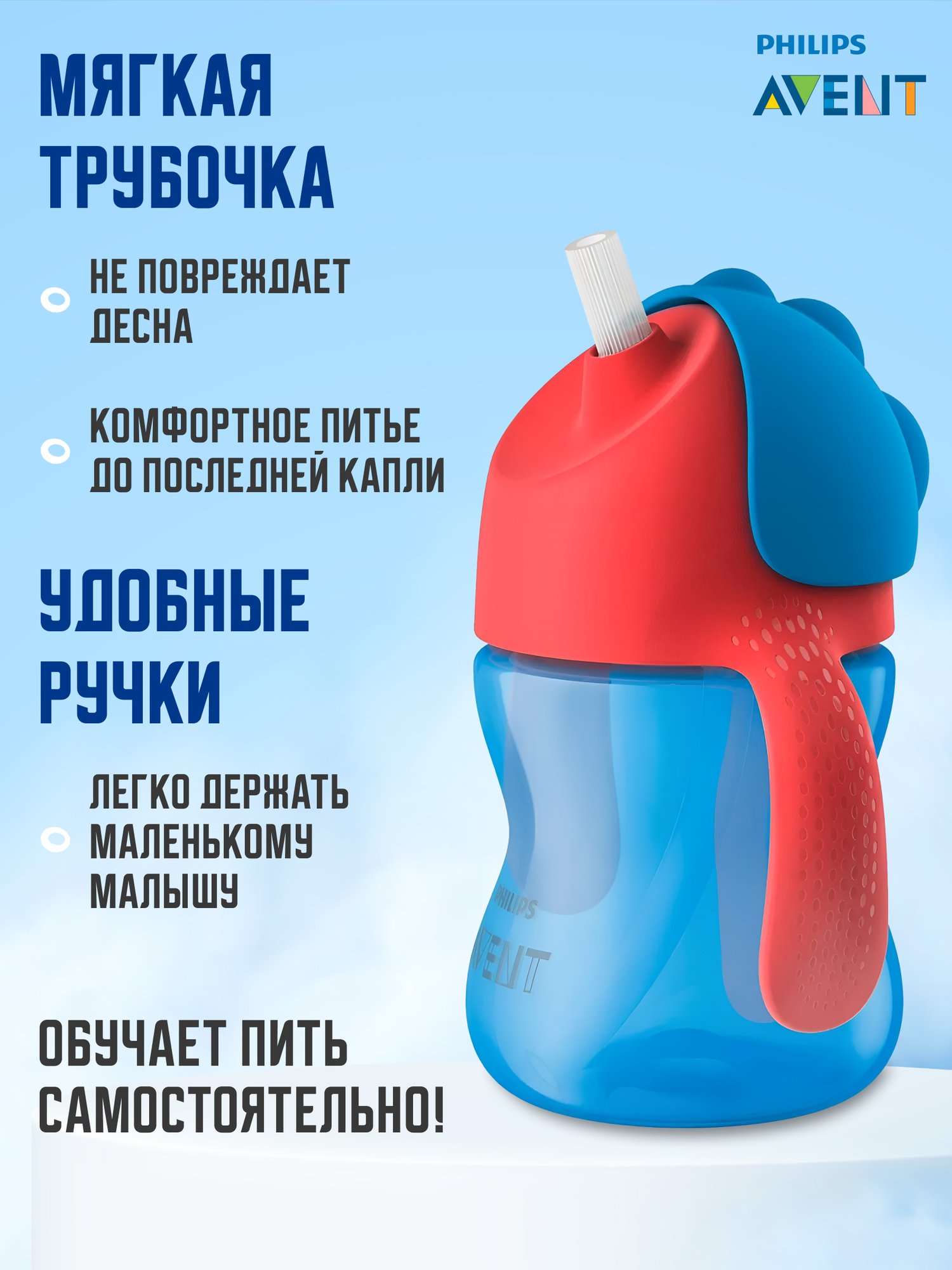 Детский поильник с ручками и трубочкой Philips Avent SCF796/01 200 мл, с защитной крышкой, синий/красный интересное: