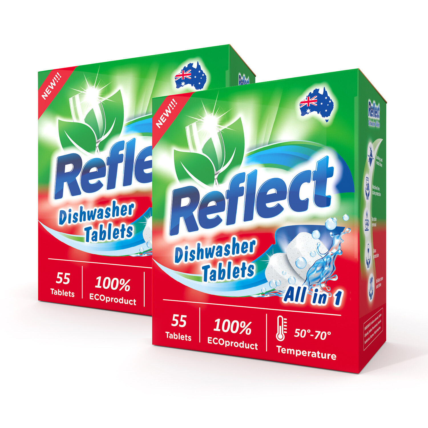 Таблетки для посудомоечной машины Reflect All in 1 таблетки, 55 шт., коробка