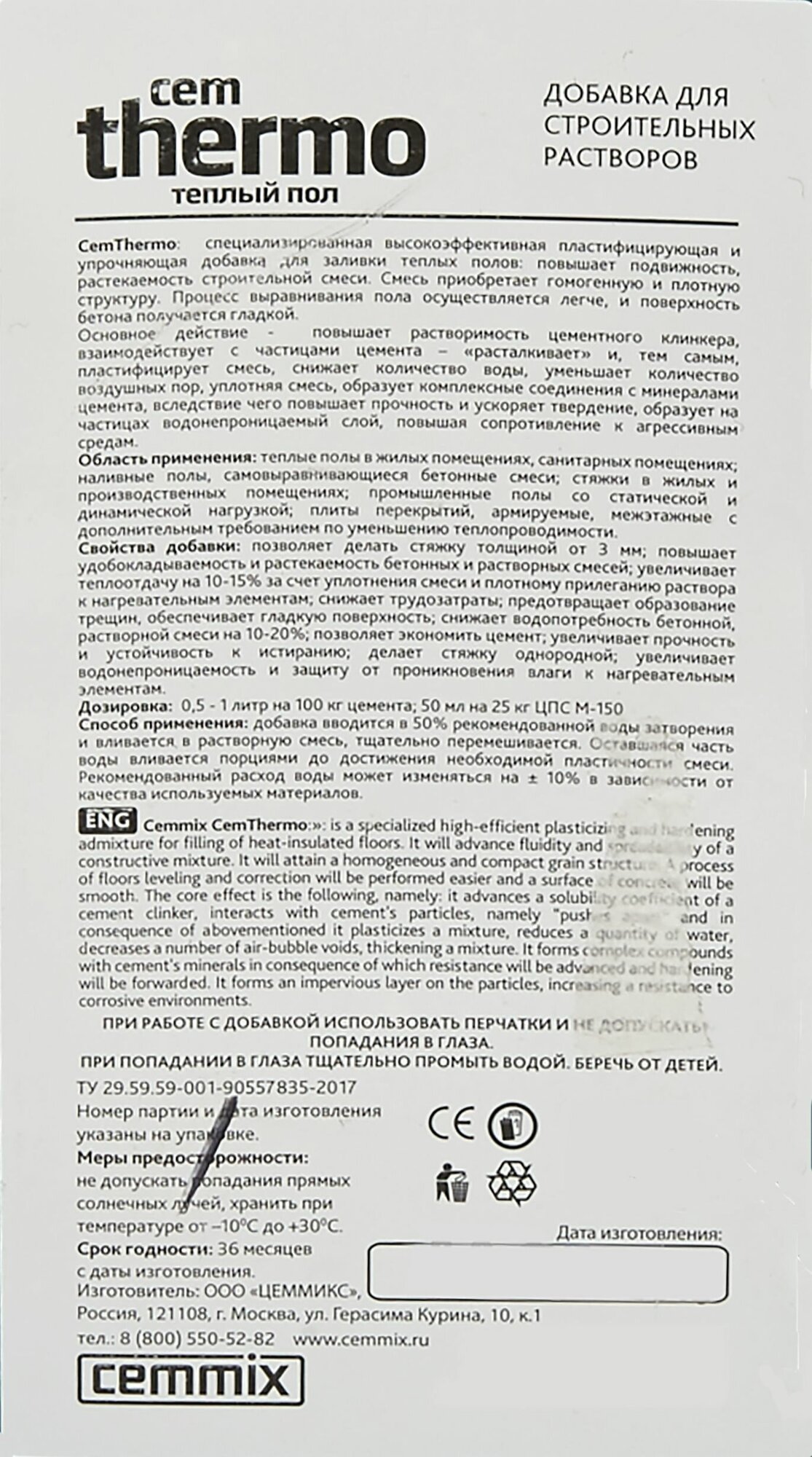 Cemmix Добавка для теплых полов CemThermo, 1л 16718332 .