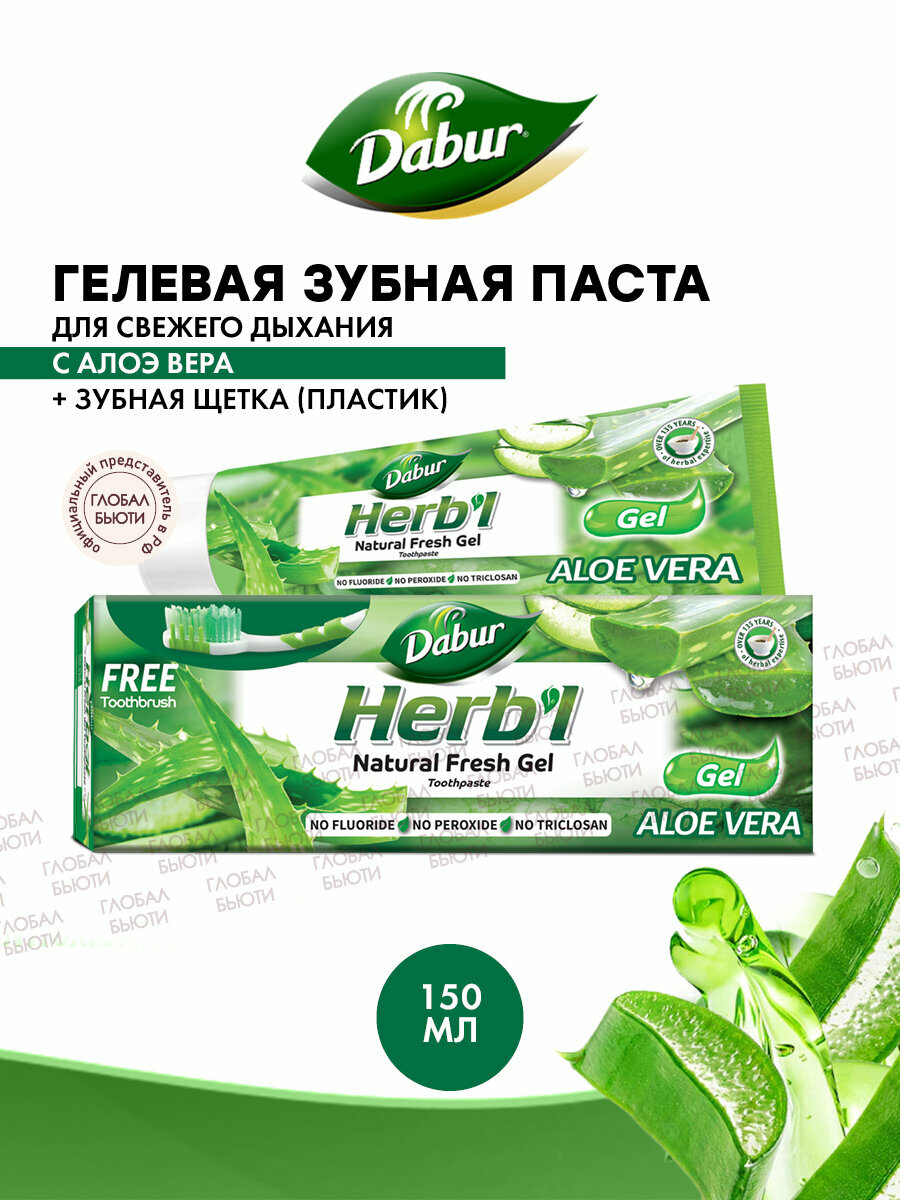 Dabur Herb'l зубная паста ALOE VERA Natural Fresh Gel /Хербл алоэ (Алое) вера, Натуральный освежающий гель (зубная щетка в подарок)/ Дабур)/ 150 г.