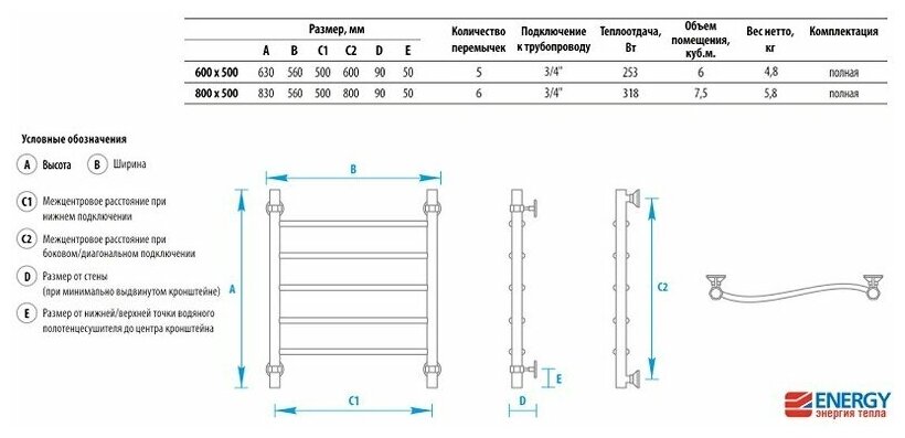 Полотенцесушитель водяной Energy Breeze 600x500 интересное: