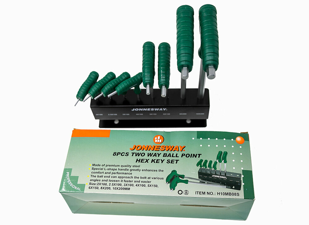 H10MB08S JONNESWAY Комплект угловых шестигранников двусторонних с шаром 2-10мм , 8 предметов