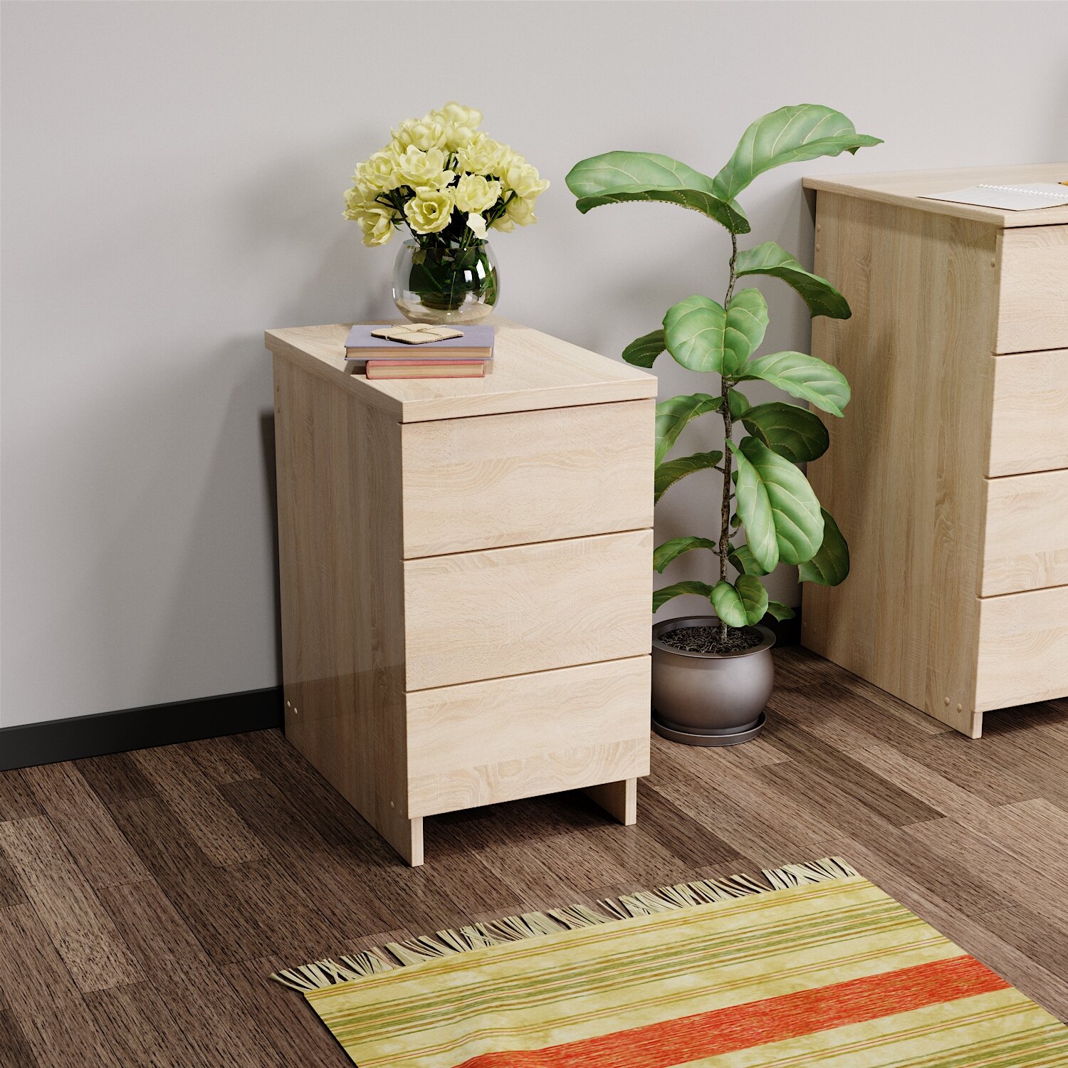 Купить Тумба прикроватная, офисная с ящиками, тумба для спальни, на кухню и ванную Дуб Санома domokomod 3 ящиками 33*50*58