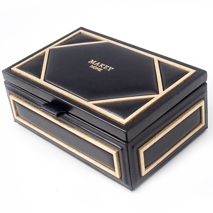Шкатулка Makey DECO, натуральная кожа, для украшений, прямоугольная, чёрная