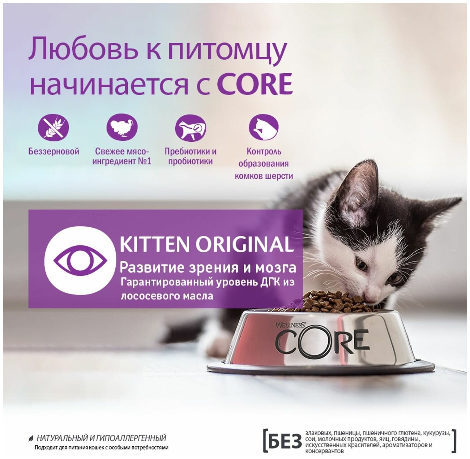 СохранитьWellness CORE-Сухой корм для котят беззерновой, с индейкой, курицей и лососем 300 г интересное: