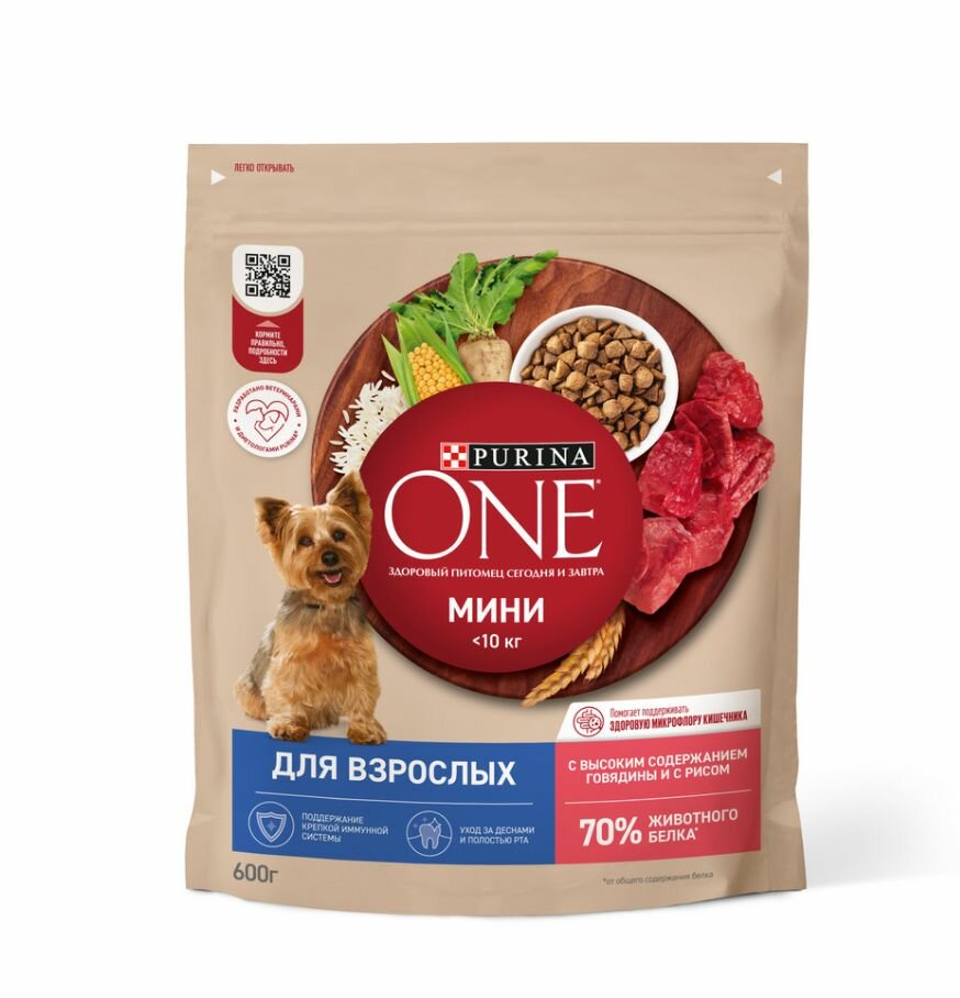 PURINA ONE мини взрослая для взрослых собак маленьких пород с говядиной и рисом (0,6 кг)