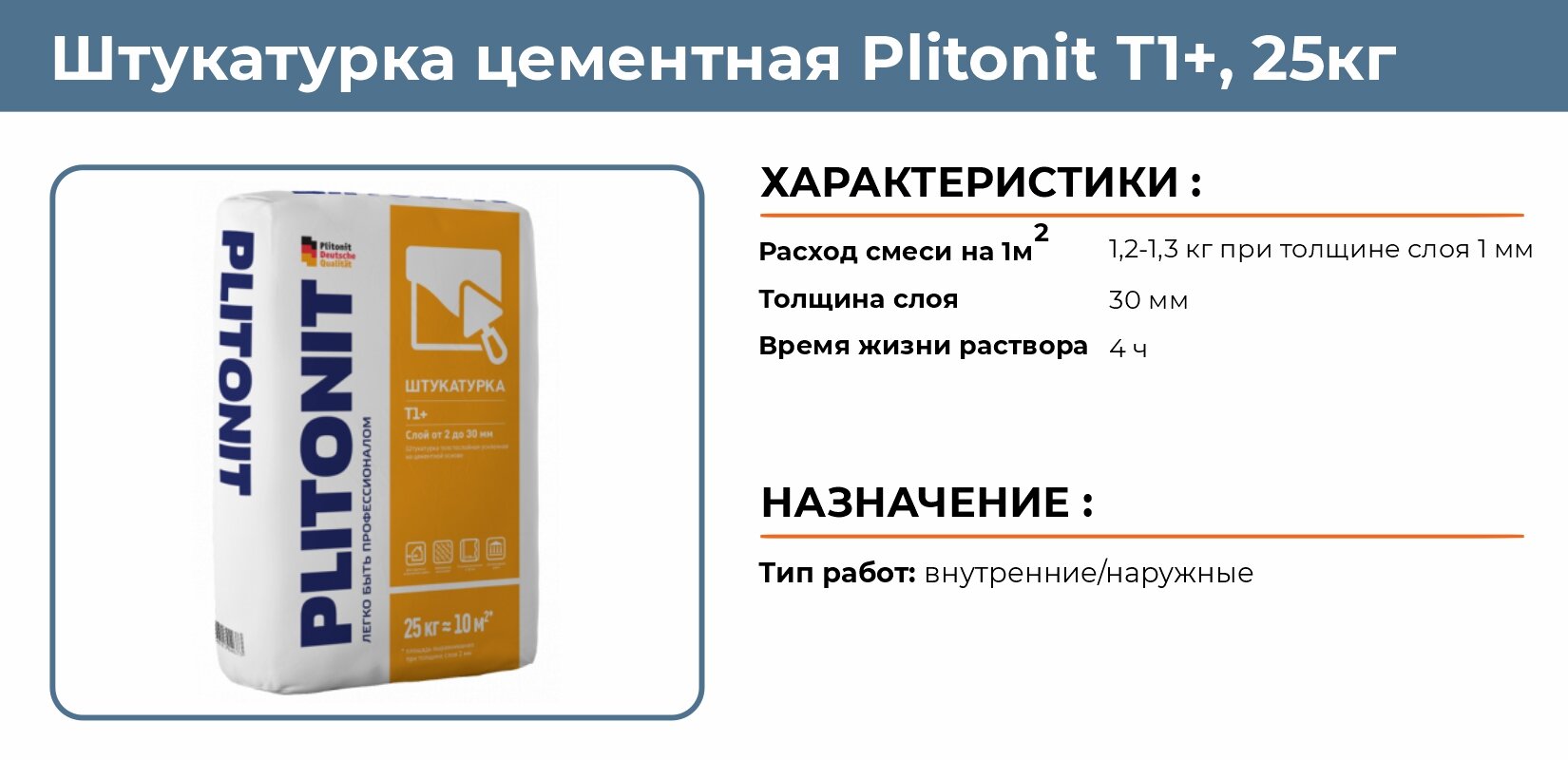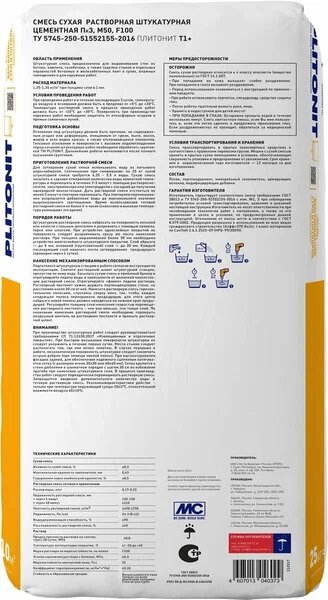 штукатурка цементная PLITONIT Т1+ 25кг, арт.Т1+ -25 кг интересное: