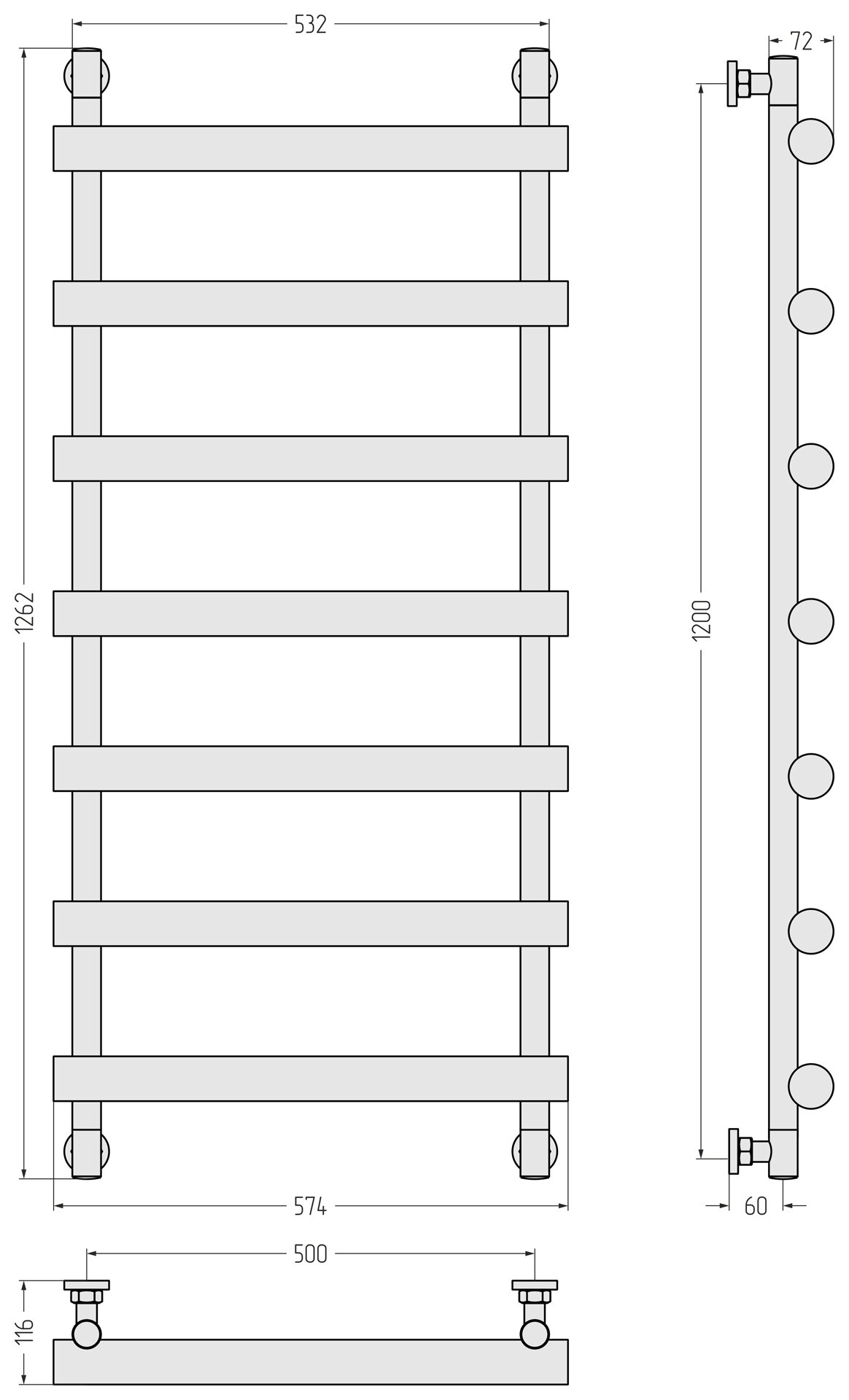 Купить Полотенцесушитель водяной Сунержа 00-0226-1250 Атлант Полотенцесушитель водяной 1200х500 мм, без покрытия