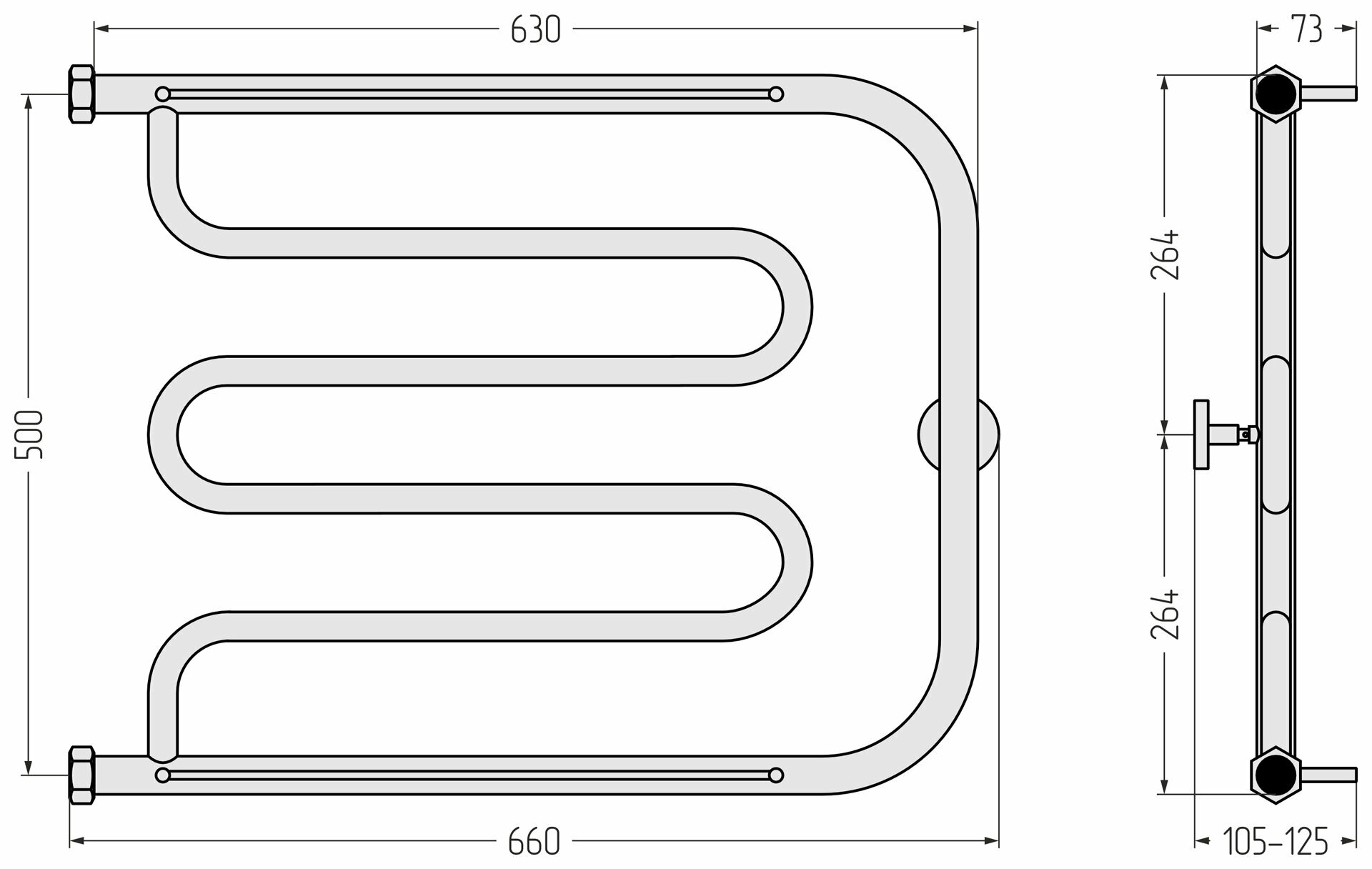 Полотенцесушитель водяной Сунержа, ВПС Лира 2П 500х650 Н. Г. 1“ (Без покрытия)