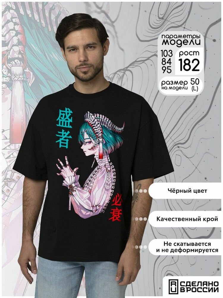 Футболка мужская и женская оверсайз черная с принтом эстетика Аниме (атмосфера, надпись, кости) - 765 интересное: