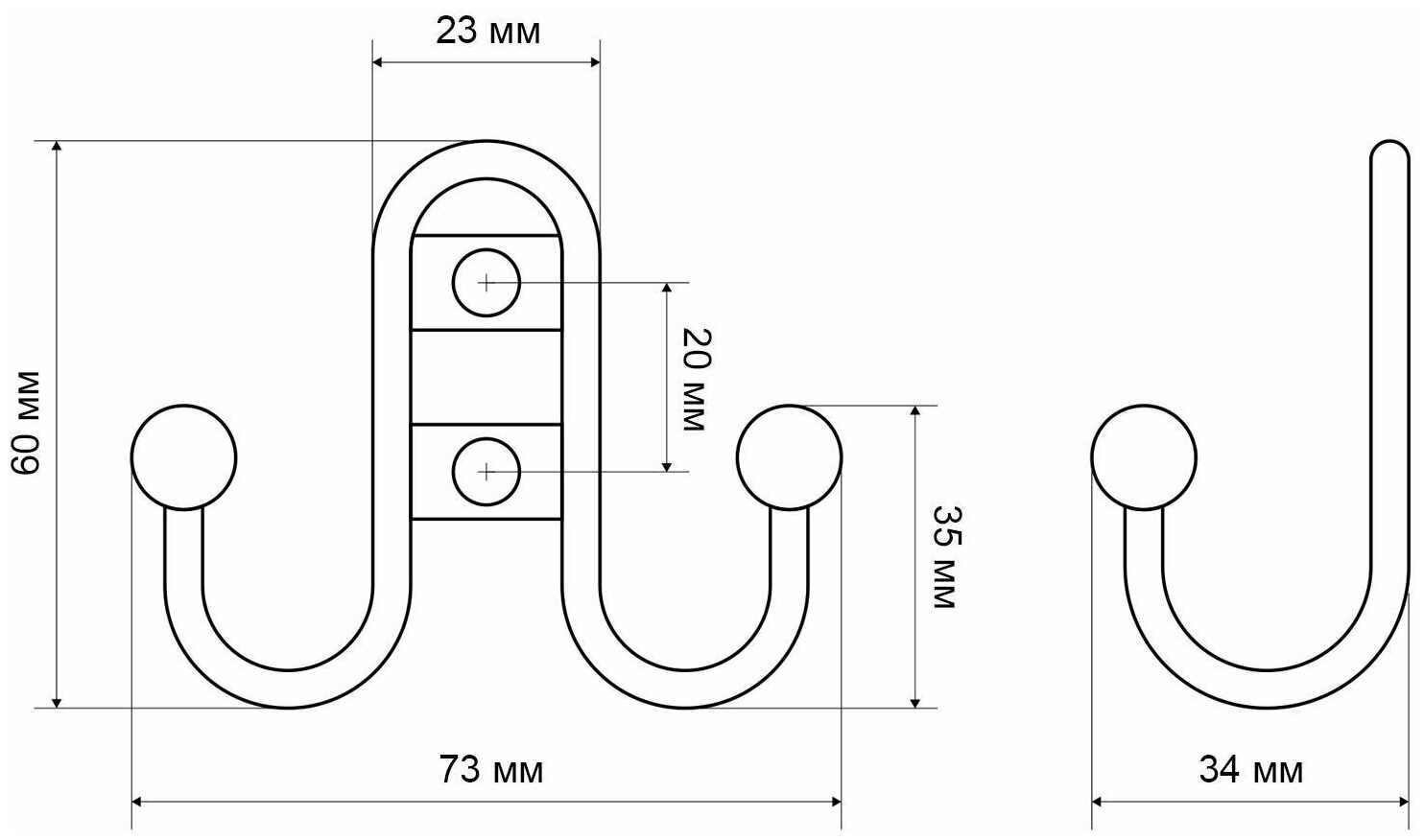 Крючок-вешалка 2-рожковый, Стандарт, 208 B AB, 10 209, старая бронза