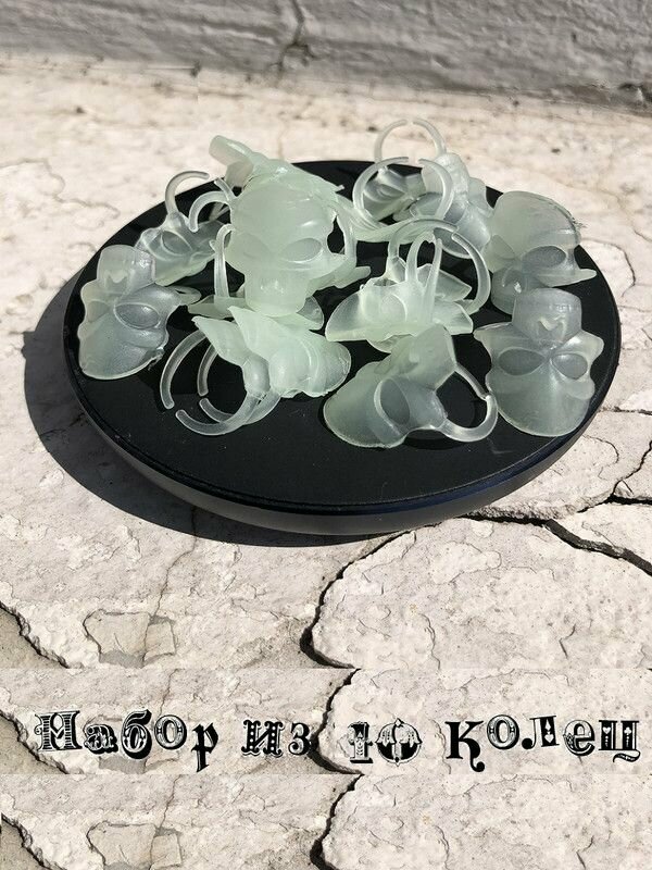 Набор колец Череп светящихся в темноте 10 штук интересное: