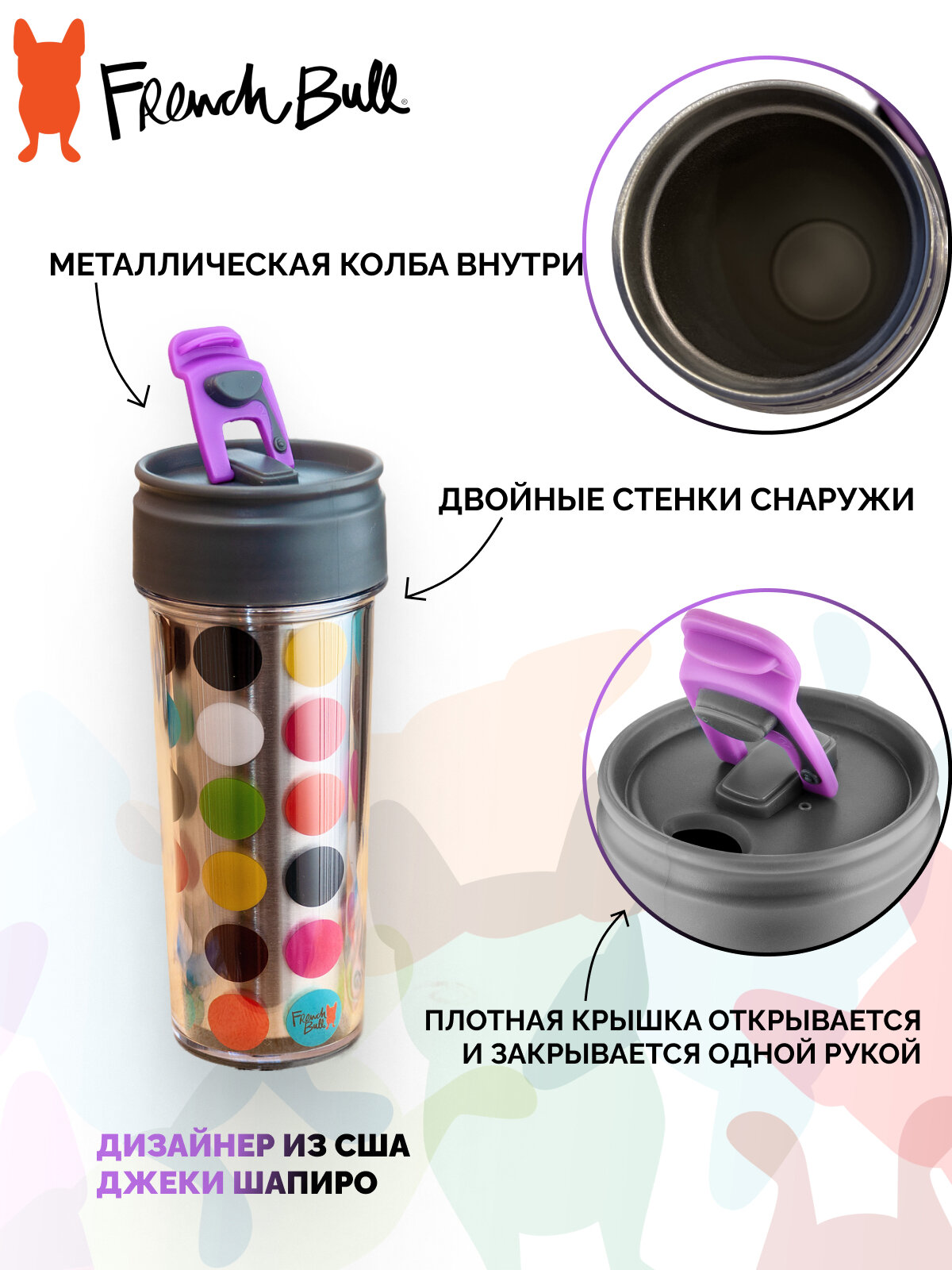 Термокружка French bull Multidot 400 мл интересное:
