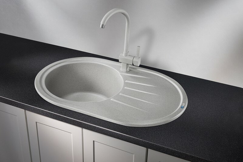 Кухонная мойка кварцевая Granula ST-7601 овальная с крылом, стандарт, чаша D 390, цвет классик (7601cl)