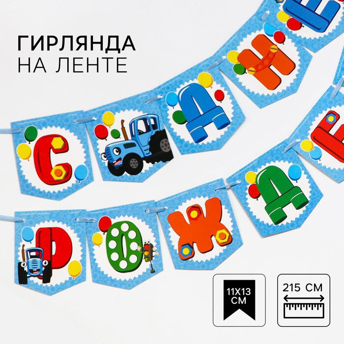 Купить Гирлянда на ленте "С Днем Рождения", длина 215 см, Синий Трактор