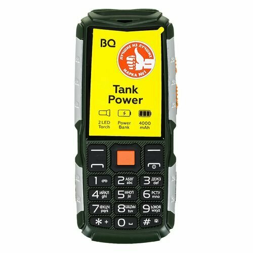 Купить Мобильный телефон BQ 2430 Tank Power 32Mb зеленый/серебристый моноблок 2Sim 2.4" 240x320 0.3Mpix GSM900/1800 GSM1900 MP3 FM microSD max32Gb