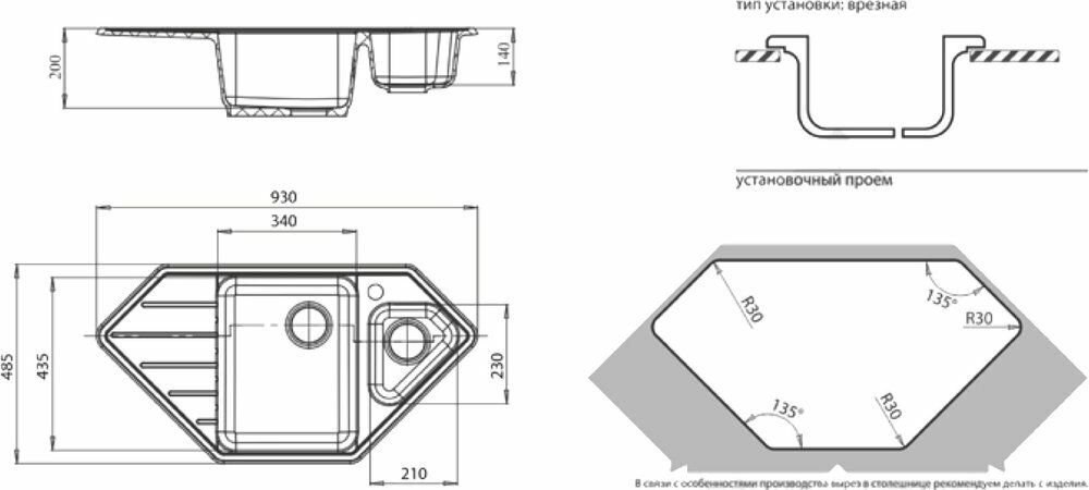 СохранитьМойка кухонная GranFest Corner GF-C950E черный интересное: