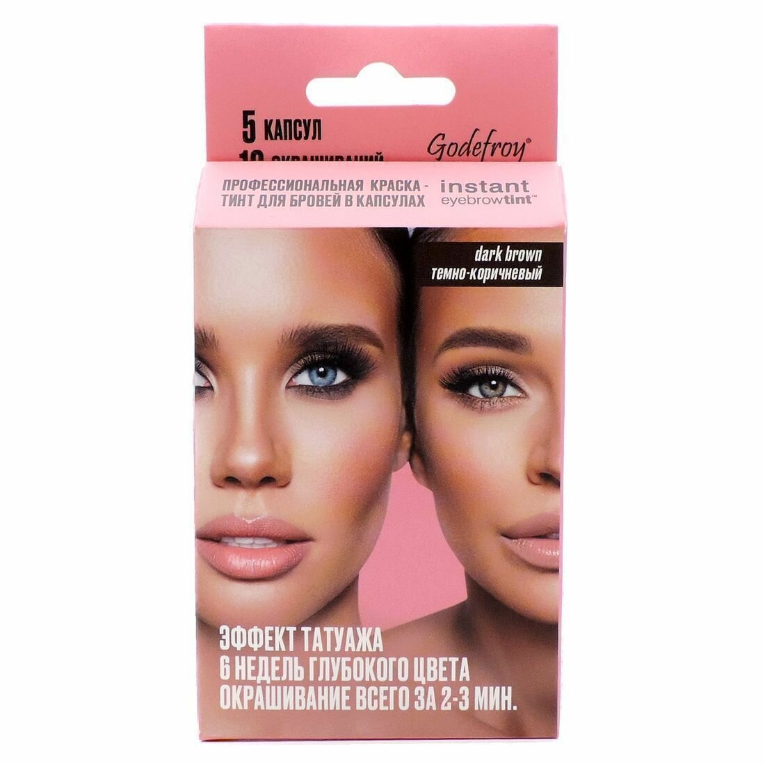 Godefroy Профессиональная краска-тинт для бровей Instant Eyebrow Tint Dark Brown, темно-коричневый, 5 капсул, 2 шт интересное: