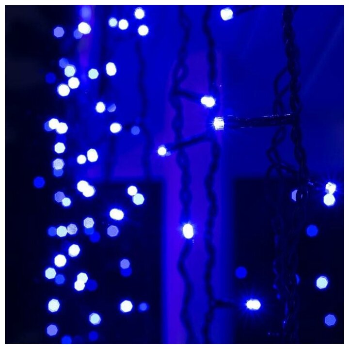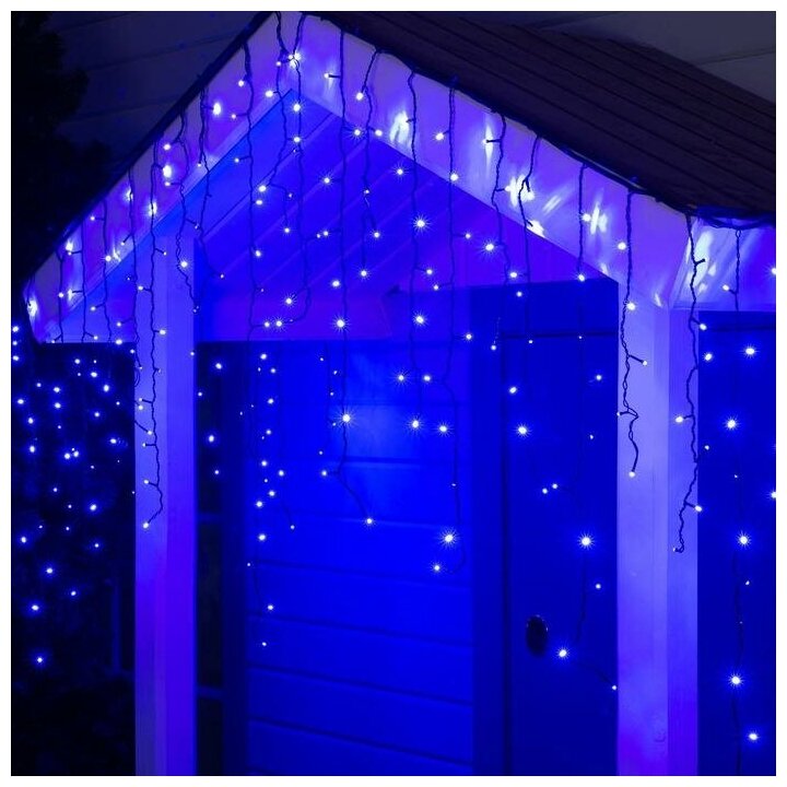 Гирлянда «Бахрома» 3 × 0.9 м, IP44, УМС, тёмная нить, 232 LED, свечение синее, 220 В интересное:
