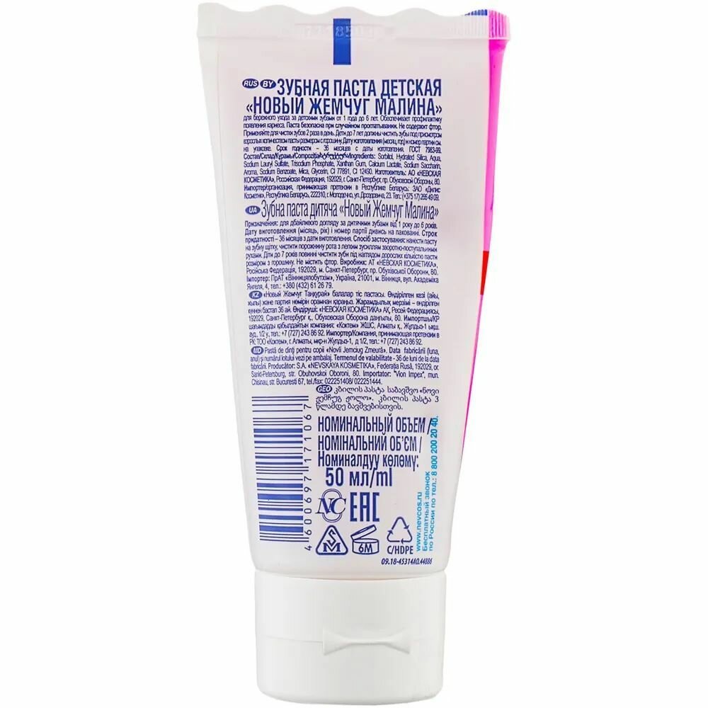 З/п новый жемчуг 50мл Малина 1-6 лет дет. вертикальная туба