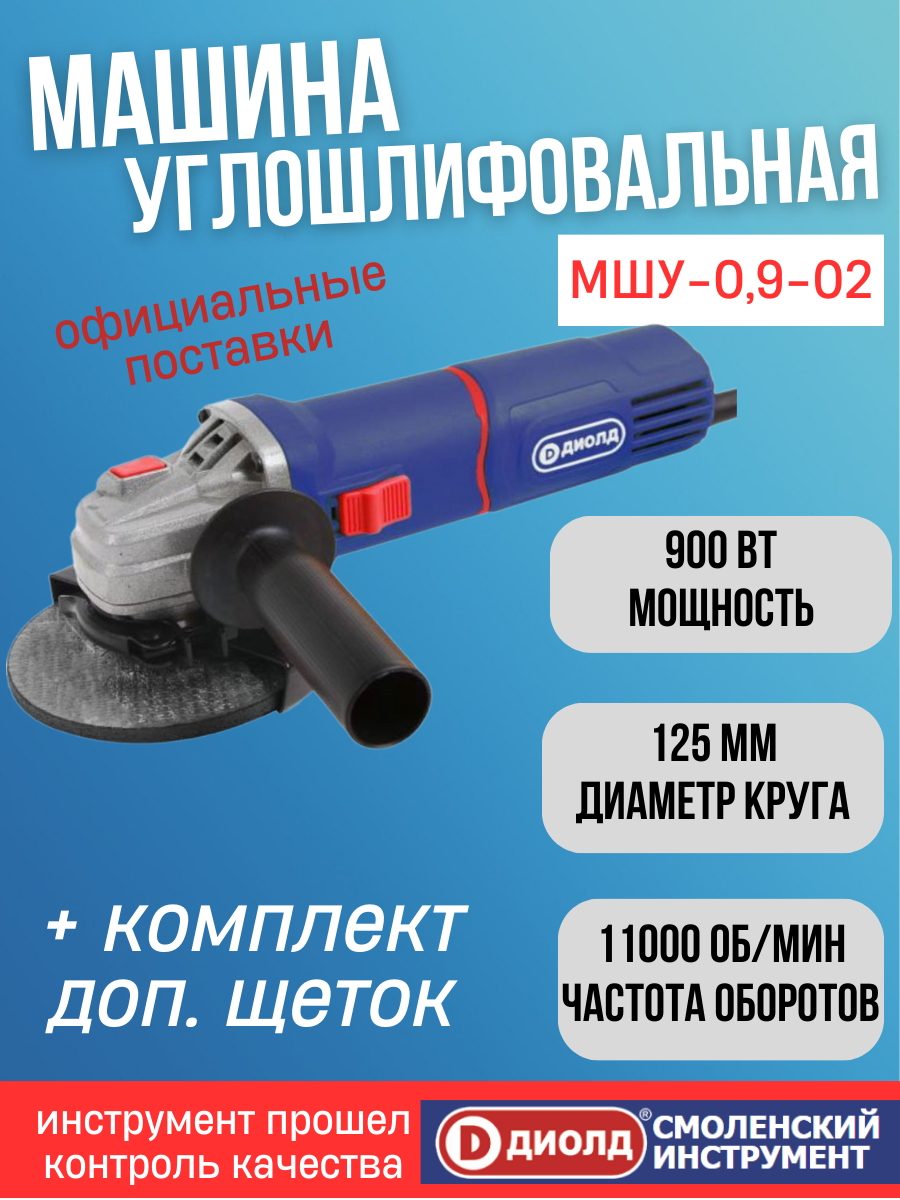 Угловая шлифмашина Диолд МШУ-0,9-02 (болгарка),11000об/ мин, 900Вт производитель россия интересное:
