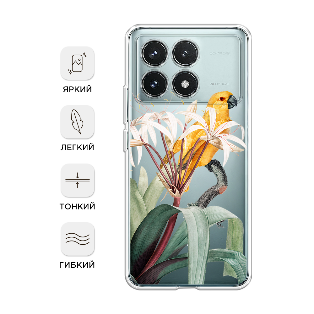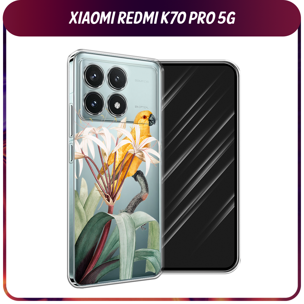 Силиконовый чехол на Xiaomi Redmi K70 Pro 5G/K70 5G / Сяоми Редми K70 Про 5G/K70 5G "Yellow parrot", прозрачный интересное: