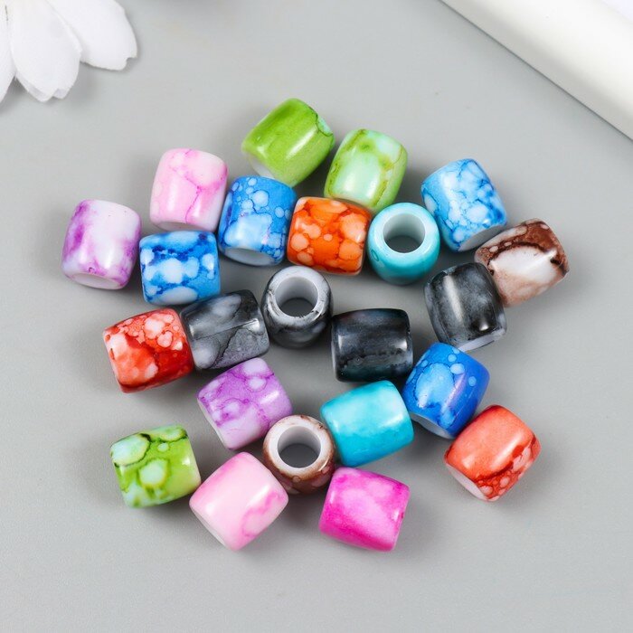 Купить Бусины для творчества пластик "Цилиндры. Пятна краски" набор 20 гр 1,1х1,1х1,2 см, 2 штуки